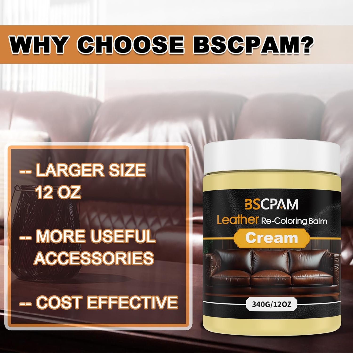 - Easy to Use: Our BSCPAM Creamy Leather Repair Kit for furniture includes a 12oz leather repair gel, three sponges, a paintbrush, a scraper, and gloves. Simply apply the colorant and let it dry naturally for 10-20 minutes, or speed up the process with a hairdryer for 1-2 minutes. (We recommend testing on a small area before full application.) It quickly restores your leather's original shine.