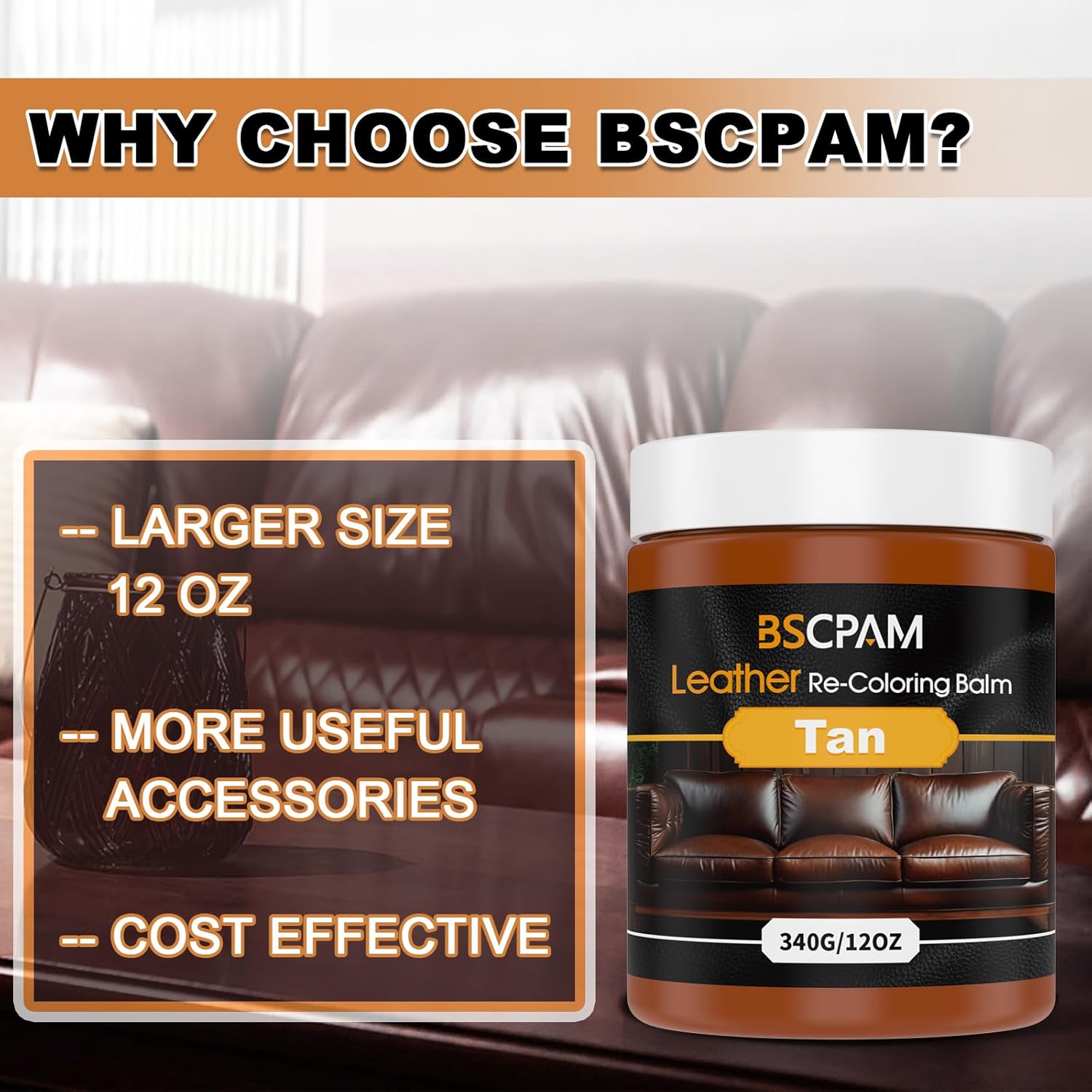 - Leather Recoloring Balm & Mink Oil 2 in 1 kit: BSCPAM Large Volume's Leather recoloring balm can restore fading color leather furniture surface to its former glory. Bring all the leather back to its original colour. and Polished leather with Mink oil, It makes the leather more shiny and lubricated, and also protects the surface of the leather, making the surface waterproof, anti-division and more durable.