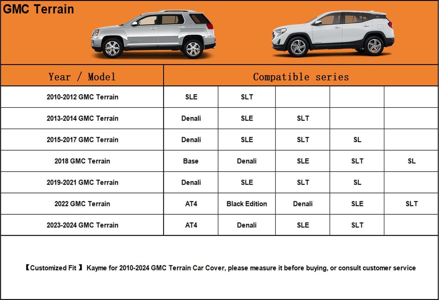 - 【Suitable for】— Custom fit for GMC Terrain (2010-2025). Come with a large enough portable bag to store your cover when you do not use