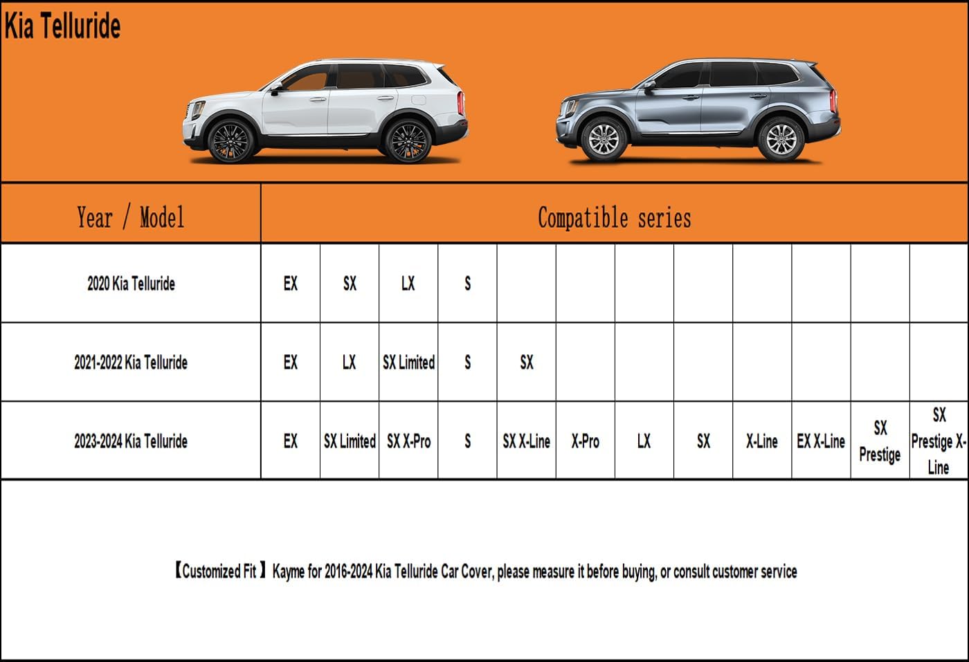 - 【Suitable for】— Custom fit for Kia Telluride (2016-2025) . Come with a large enough portable bag to store your cover when you do not use