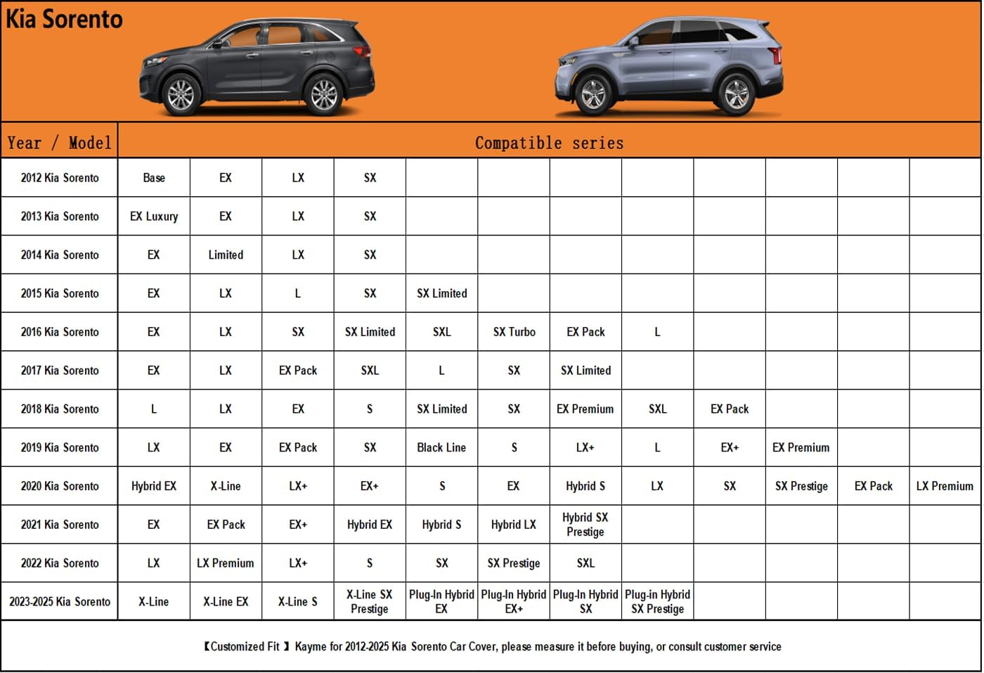 - 【Suitable for】— Custom fit for Kia Sorento (2012-2025). Come with a large enough portable bag to store your cover when you do not use
