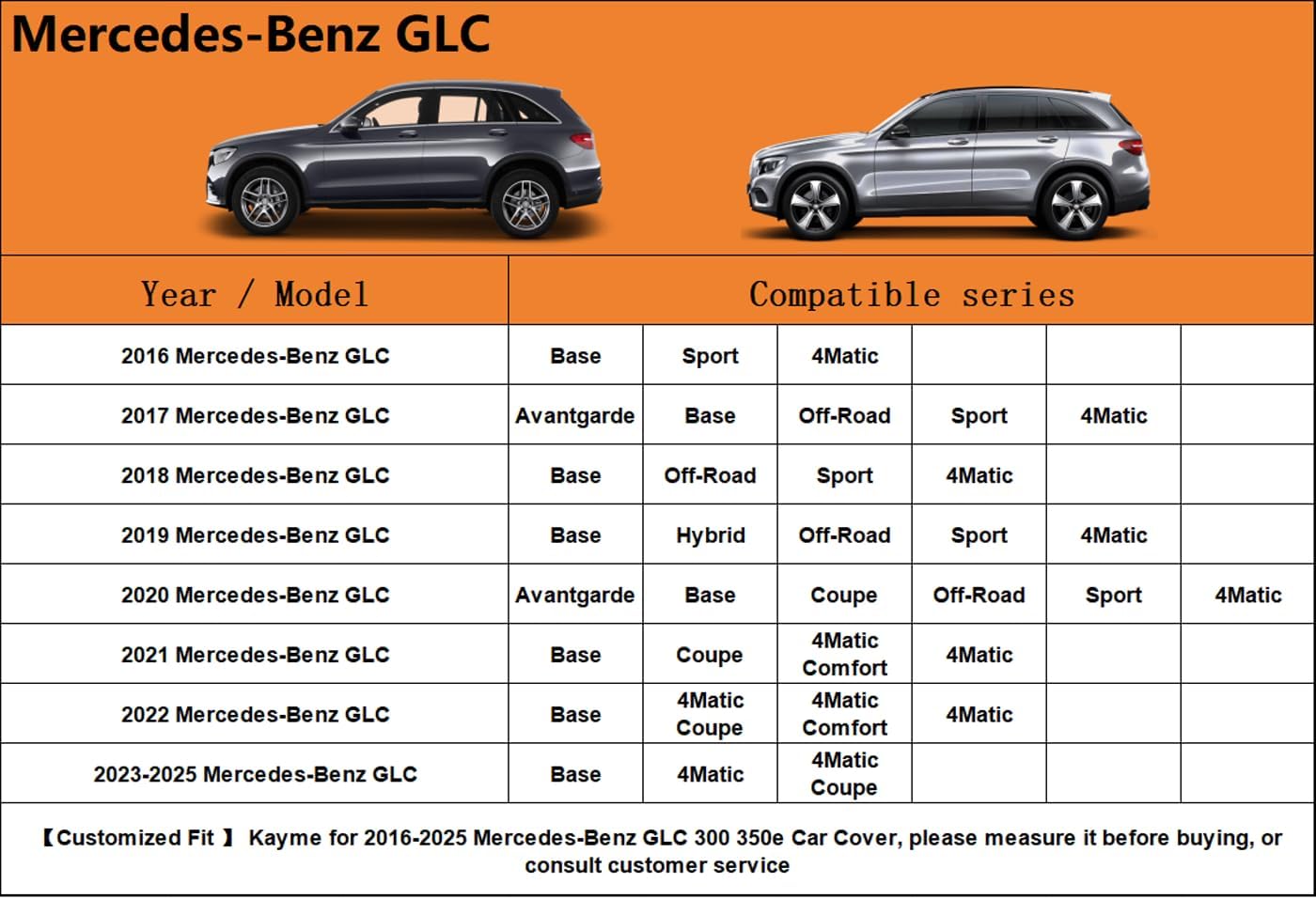 - 【Suitable for】— Custom fit for Mercedes-Benz GLC(2016-2025) . Come with a large enough portable bag to store your cover when you do not use