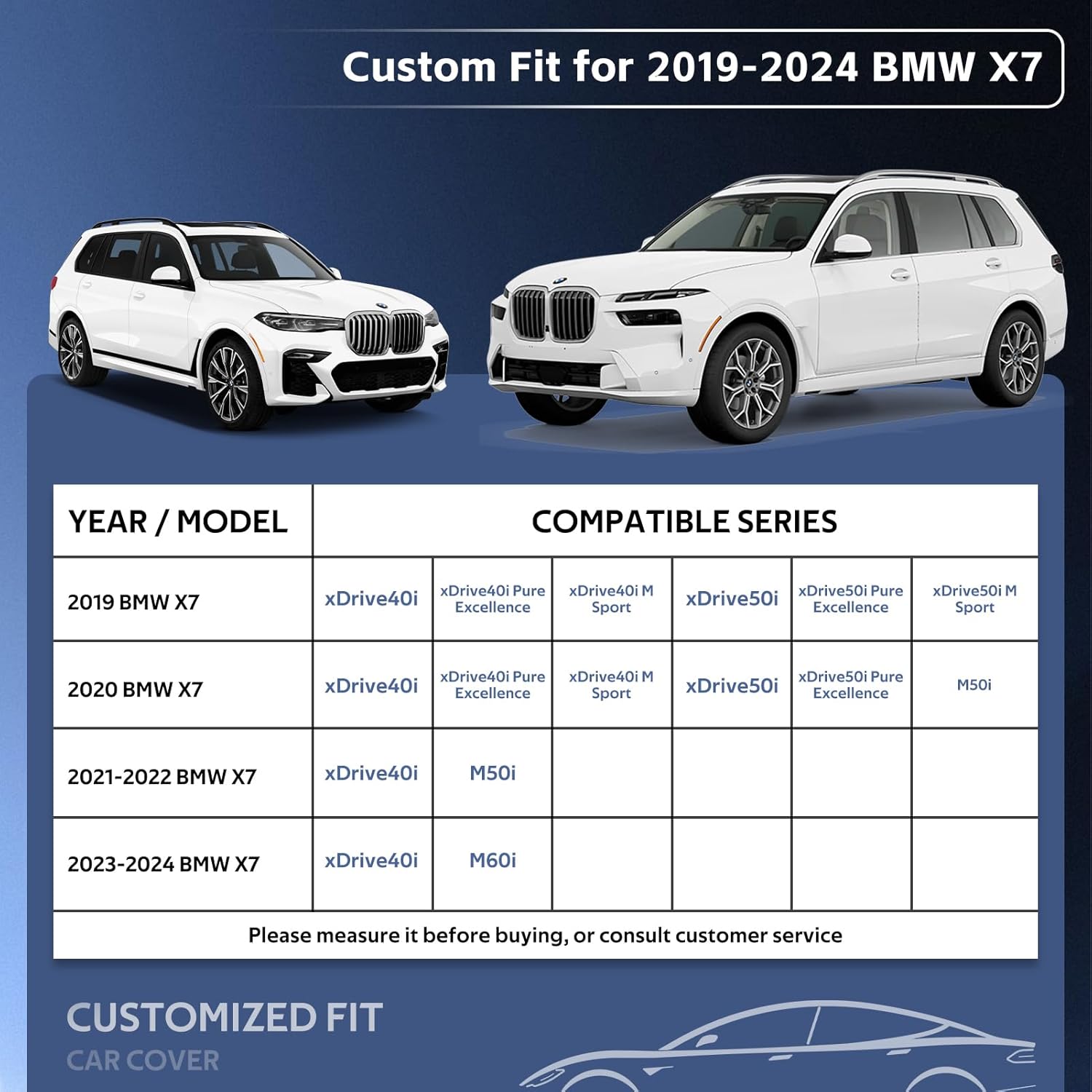 - 【Perfect Fit】— Holthly has conducted experiments to obtain a customized car cover specifically designed for BMW X7 (2018-2024). The custom-like fit of the full cover not only enhances the -aesthetics of your vehicle but also provides superior wind resistance, thereby prolonging the lifespan of the hood. It offers enhanced and long-lasting protection for your car.