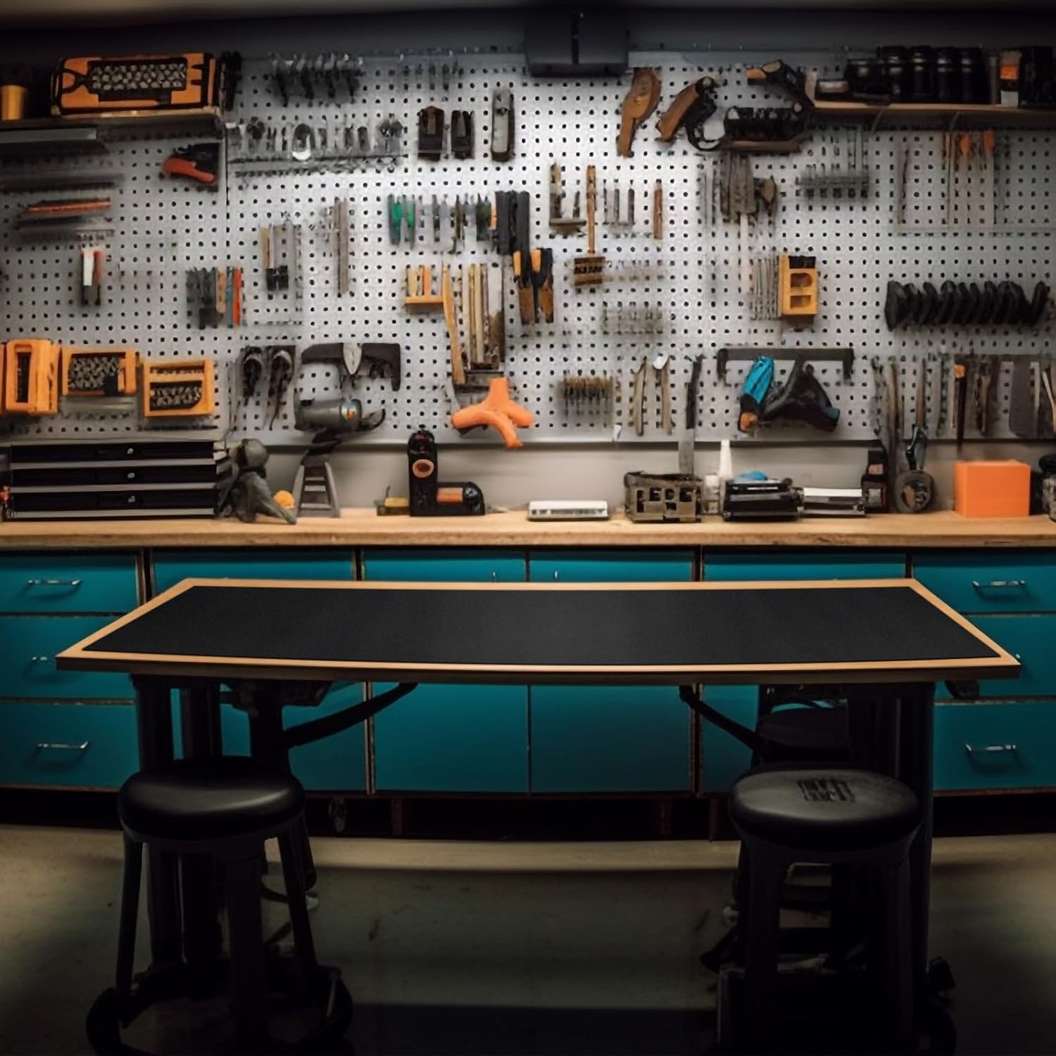 Vesici 1 Roll 23.5 x 100 Inch Work Bench Mat Self Adhesive Resistant PU Floor Runner Easy to Clean Workbench Mat Pad for Garage Workbench or Table Storage Tool Organization,Black