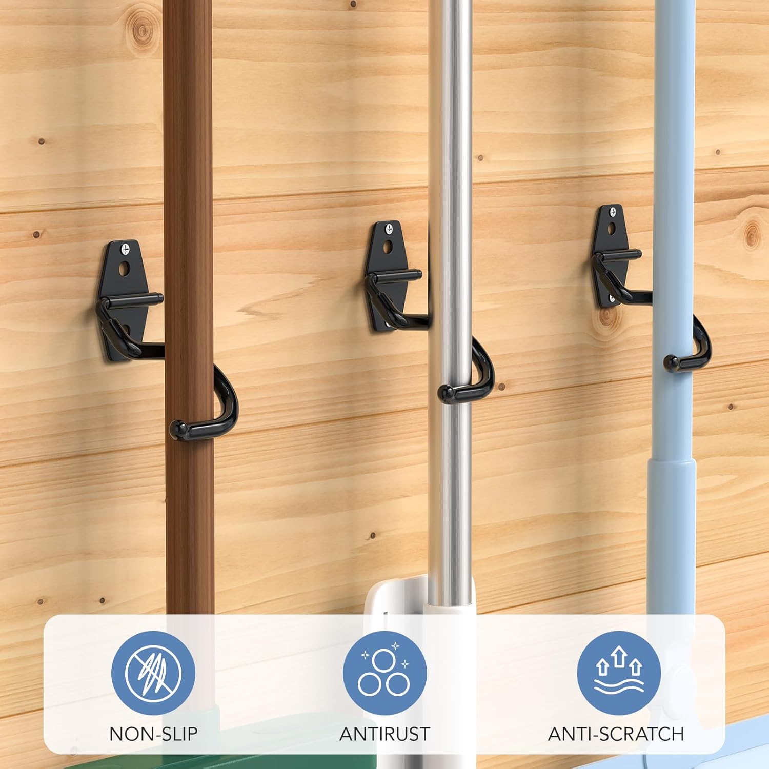 - 【High-Quality Material】Our garden tool storage hooks are made of heavy-duty steel metal material with a non-slip rubber coating. They securely hold items in place, protecting their surfaces from scratches or damage, and preventing the garage hooks from slipping or rusting.