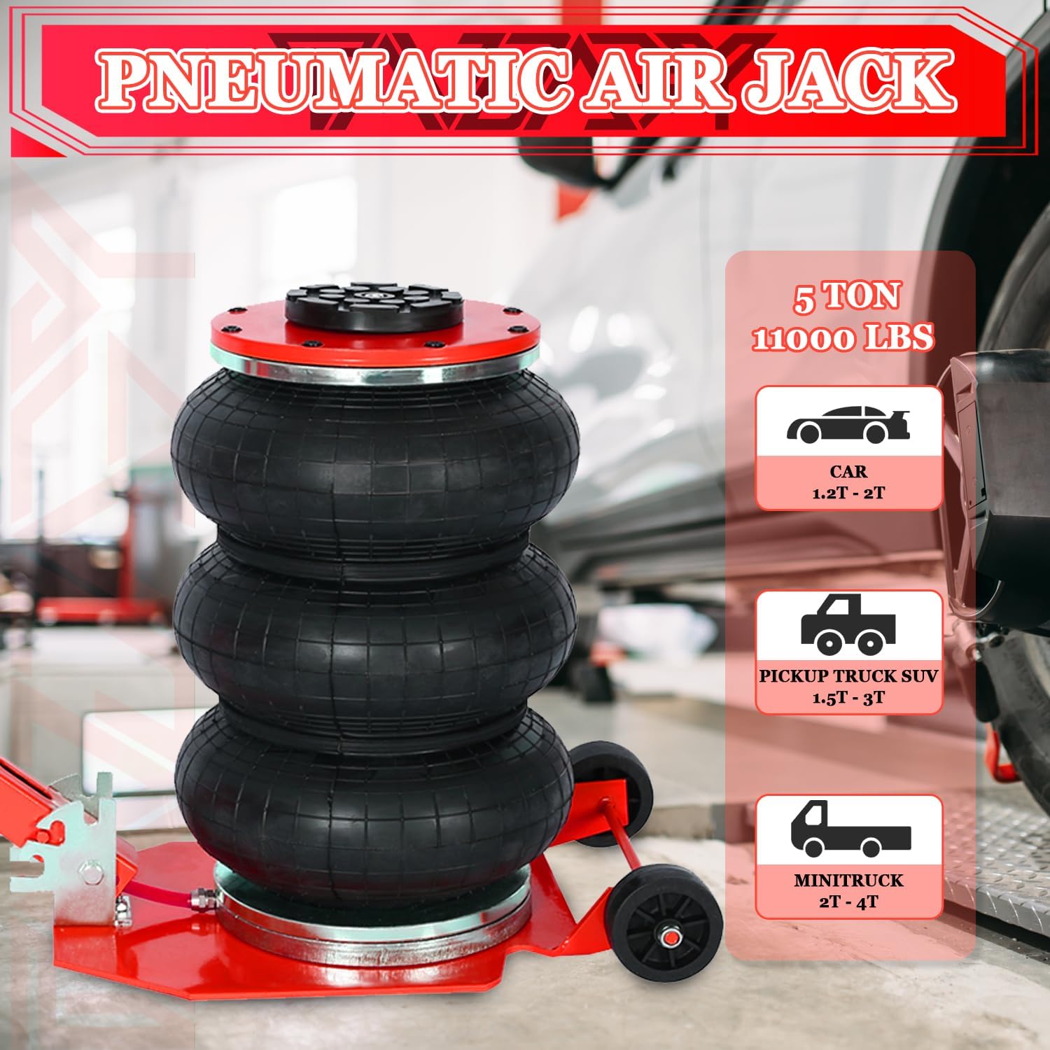 5T Triple Bag Air Jack 11000lbs Pneumatic Jack 3s Fast Lift Up 16in Airbag Jack with Adjustable Long Handle Heavy Duty Triple Air Bag Jack Lift for Cars Garage (Red)