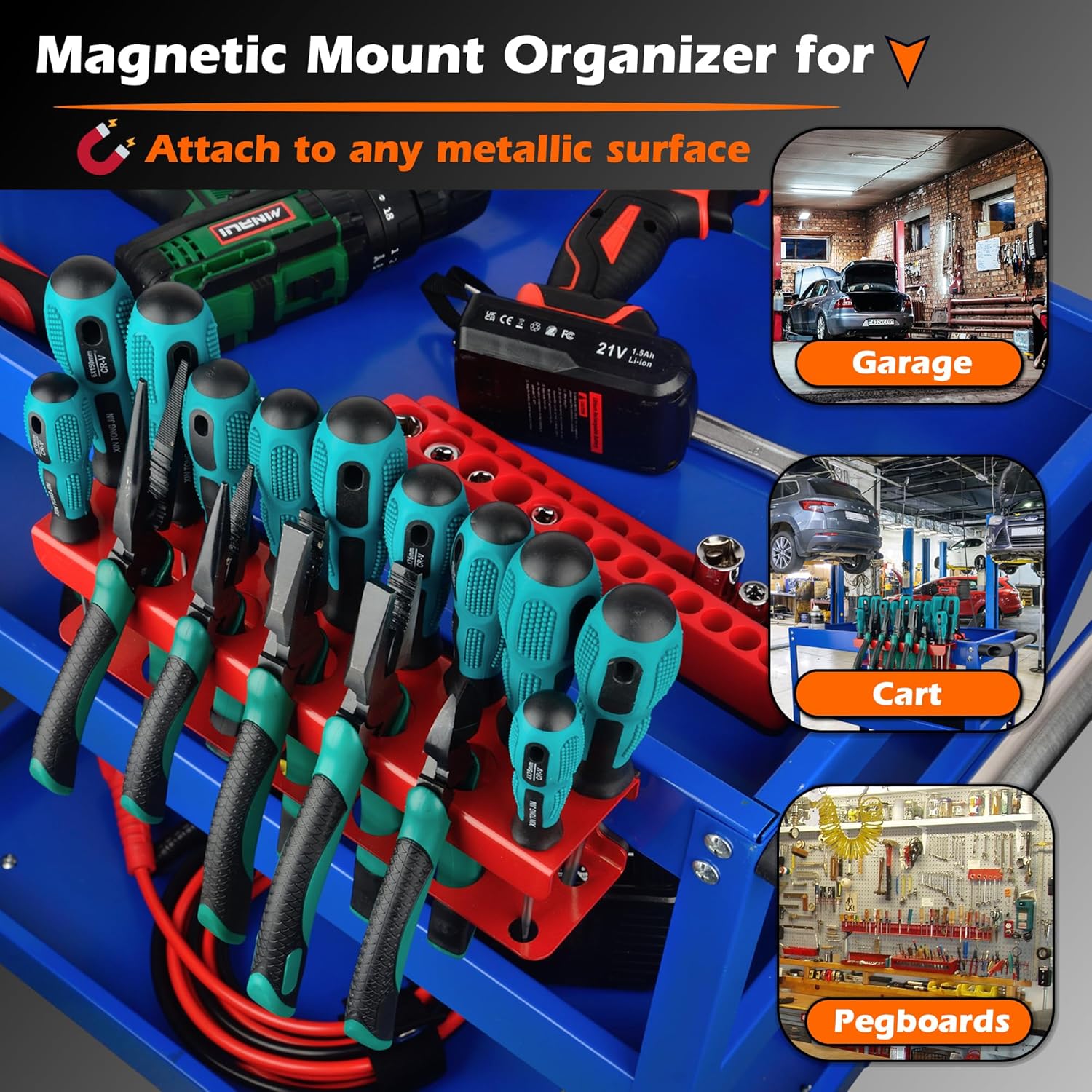 - [Magnetic Screwdriver Storage Rack]: The screwdriver storage rack helps you organize your messy workbench and perfectly arrange screwdrivers, pliers and other tools. No more digging through a messy toolbox