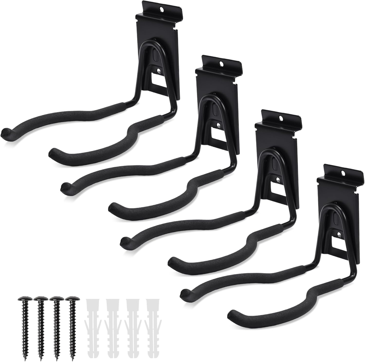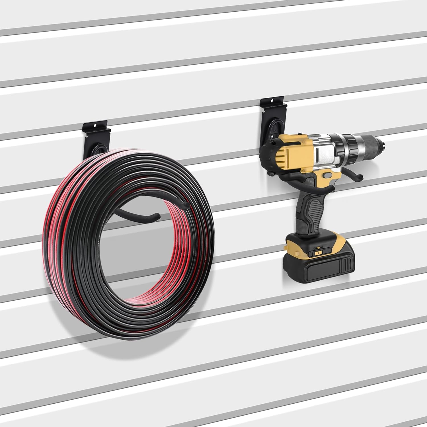 - 【EASY TO USE&UNIVERASL FIT】Our slat wall trimmer hanging hooks fit standard slat wall like Proslat, Handiwall, Rubbermaid, etc., do NOT fit Gladiator or Husky. Also can be screwed into studs or walls. You can easily install the weed trimmer wall hanger. This weed eater rack comes with two pre-drilled holes and fixing screws & anchors for easy installation.