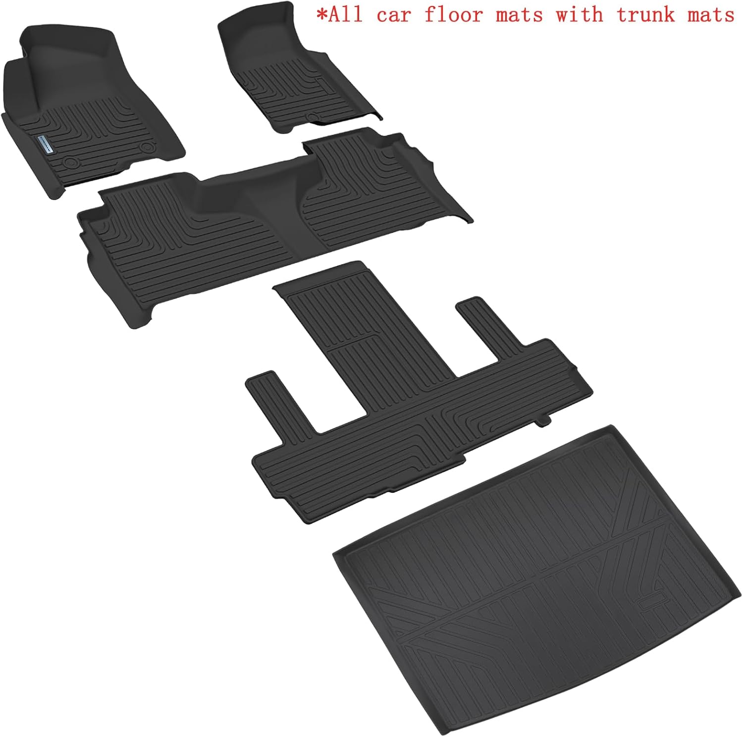 Floor Mats for 2021-2024 2025 Chevrolet Suburban 7 Seats (2nd Row Bucket Seats)(not fit 8 Seats)/ GMC Yukon XL(Only XL) & Trunk mat TPE Floor Liners & Cargo Liner for Chevy