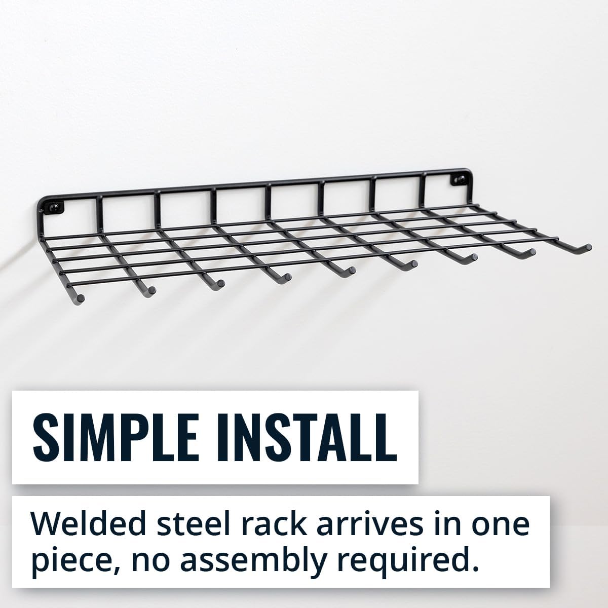 - Wall Mount Shelf – Solid steel wire shelf offers convenient wall storage for lawn and garden supplies, floral supplies, boxes, bags, and more. The rigid frame supports up to 40 lbs for a secure setup.
