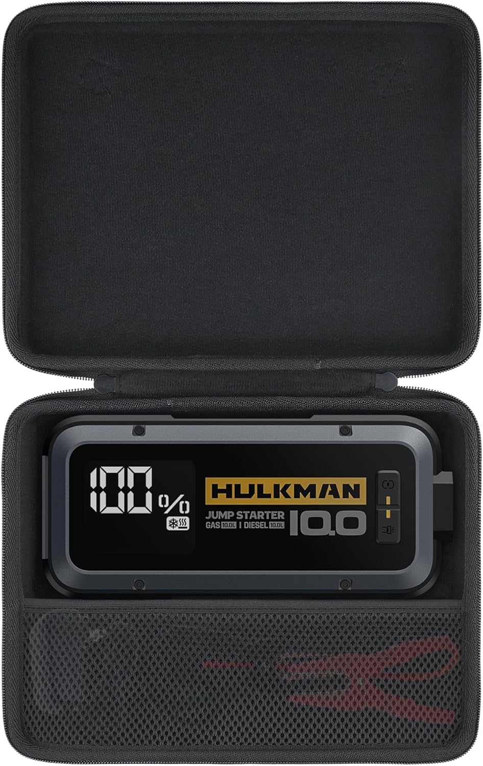 - Reasonable Storage of Jump Starter Accessories:Built-in mesh pocket can store the booster clamps & charge adapter of your hulkman alpha100 jump starter, when your booster clamps and alpha100 battery starter are put together, you can find it quickly when you need to use it.