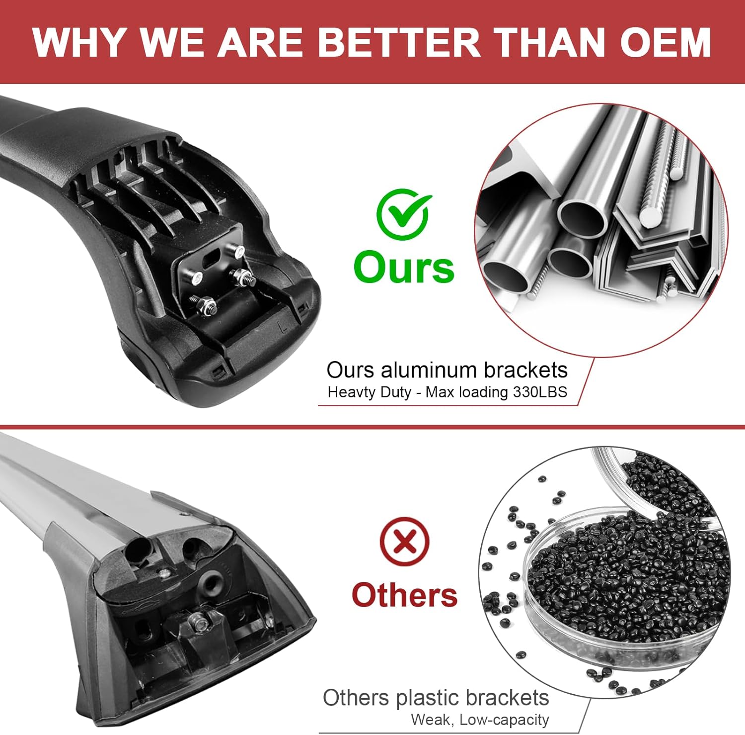 - 【Exceed OEM parts in securest and strongest】Die-casting aluminum brackets and upgraded heavy duty 2mm thickness aluminum bar which add to extra load capacity and durable, better than most in the market. Metal mechanism lock system offers 100% secure for anti-theft and durable. Max load capacity is 330lbs (150kg), do not worry about the heavy luggage.