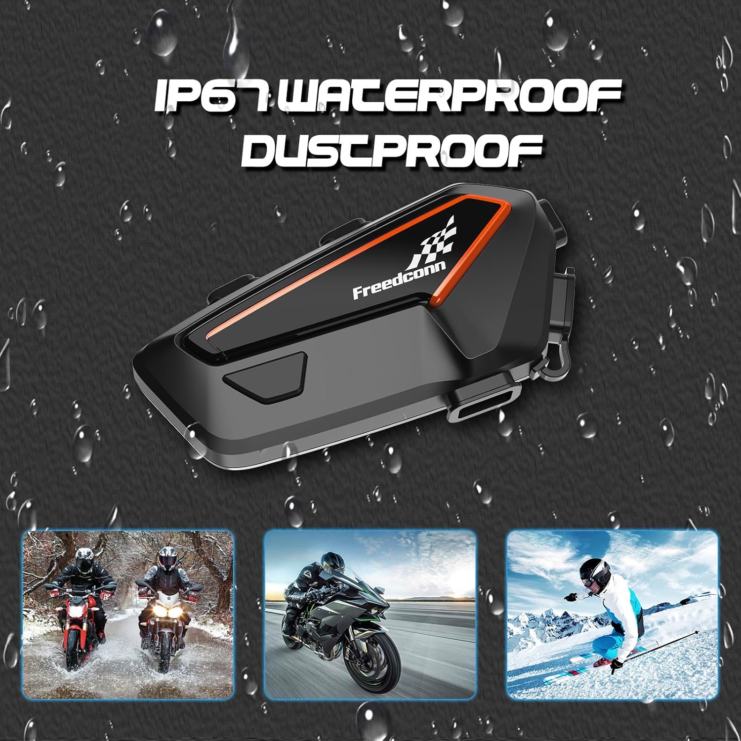 FreedConn F1 Motorcycle Helmet Bluetooth Headset with CVC Noise Cancellation, Stereo Music, Bluetooth 5.2, IP65 for Motorcycle Touring, Snowmobile/ATV