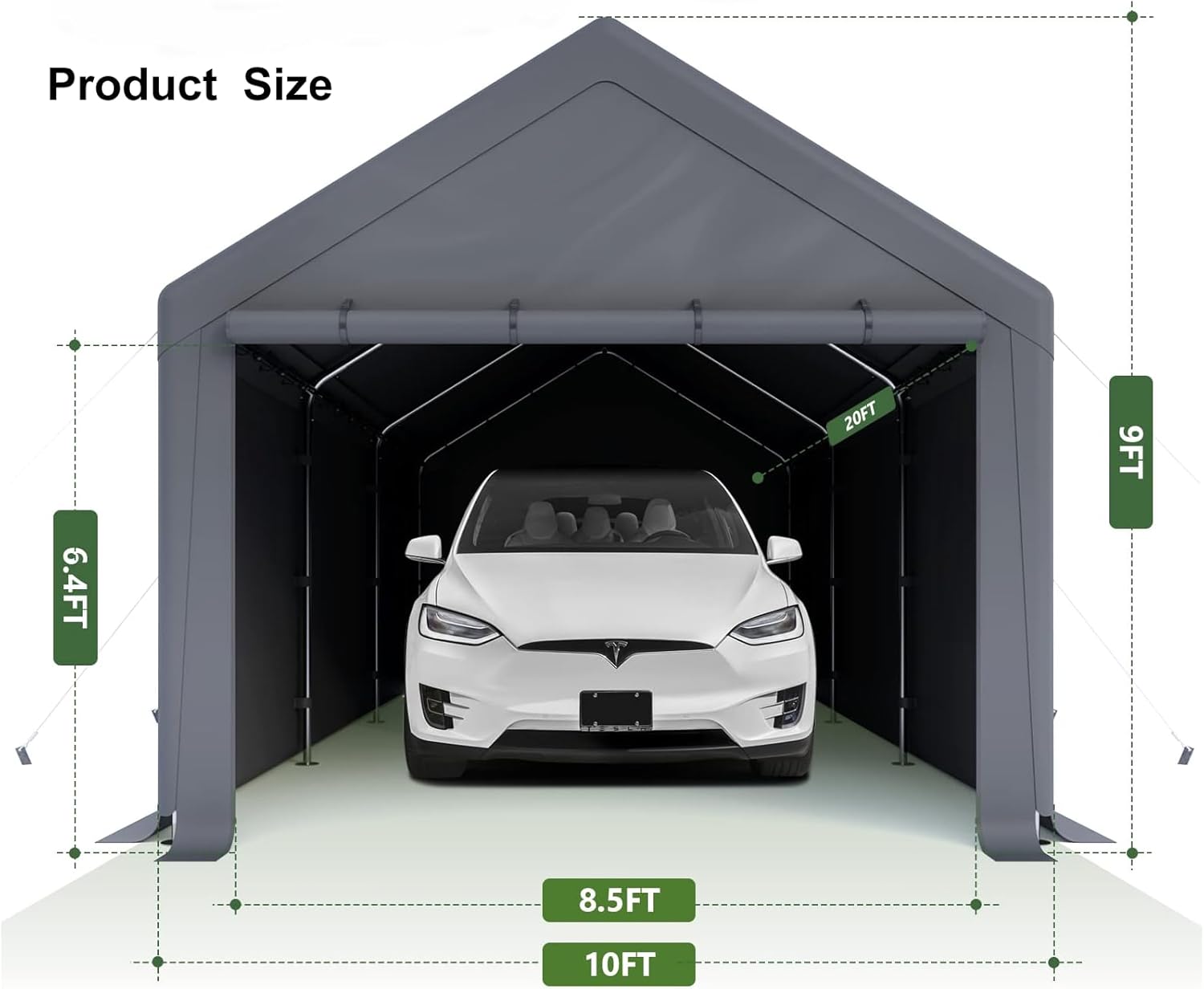 - 【Carport Canopy 10x20 Heavy Duty for Strongly Against Wind】:Our all-season carport cover boasts 180g 3-layer PE fabric, waterproof, UV-resistant, and tear-resistant. The canopy cover is firmly fixed on the frame by elastic balls and the support foot has a stable foundation, you can rest assured that your vehicle can be well-protected.