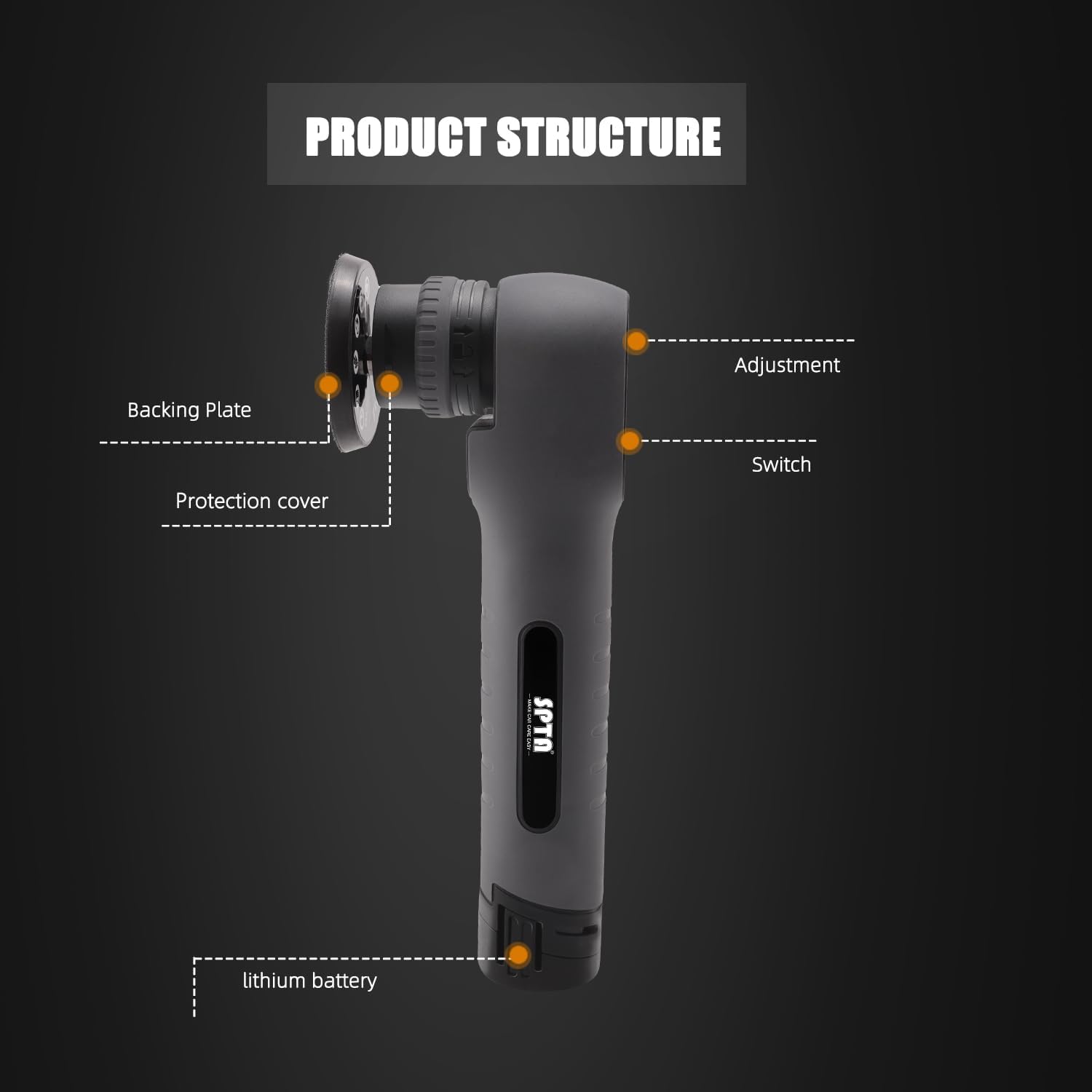 Cordless Mini Polisher, SPTA 12V Cordless Polisher for Detailed Polishing, Cordless Car Buffer Polisher, RO&DA Buffer Polisher with Mini Polishing Pads and Wool Pads for Polishing, Sanding, Cleaning