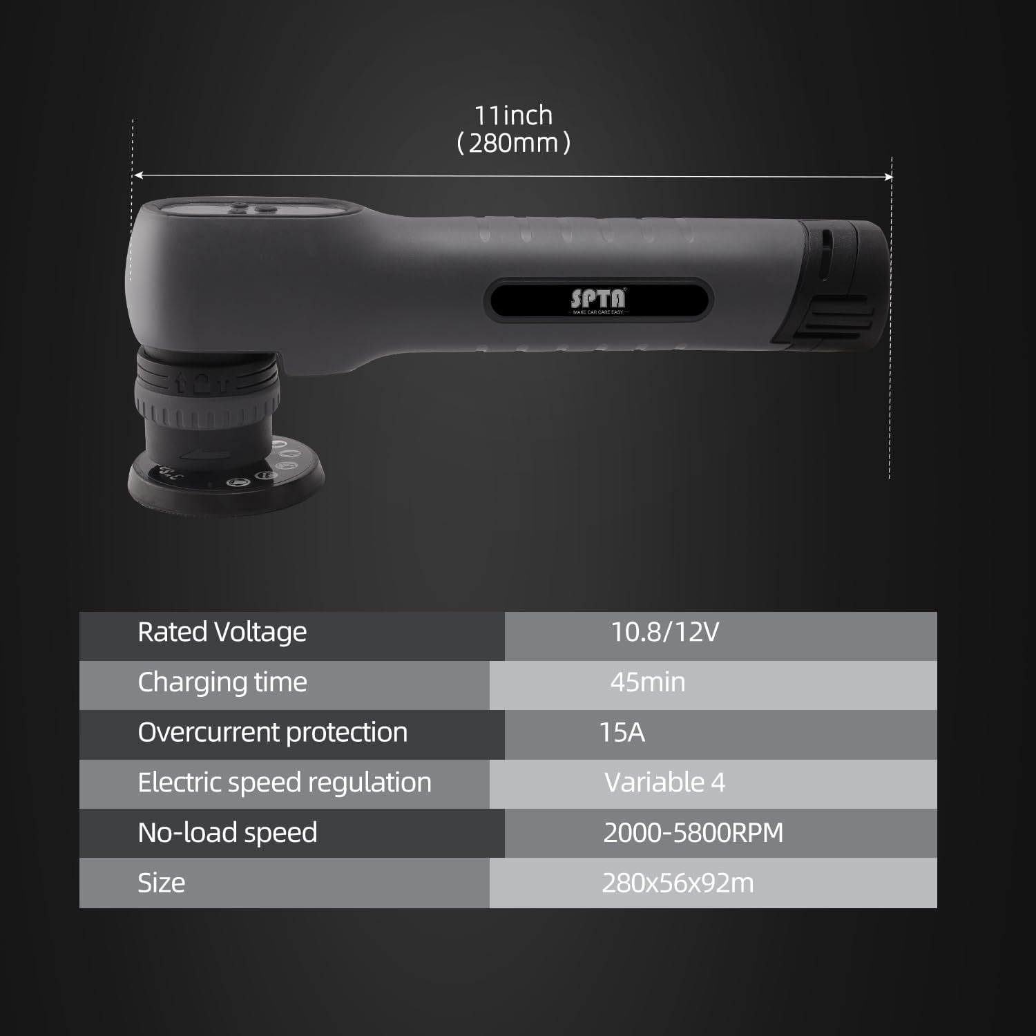 - 【Quick Installation】SPTA newly designed rechargeable cordless mini polisher adopts advanced fast interface design, you can easily connect the polisher with all kinds of tools quickly, so you can say goodbye to the trouble of using tools to install, save your energy and worry. So both professionals and beginners can use it easily.