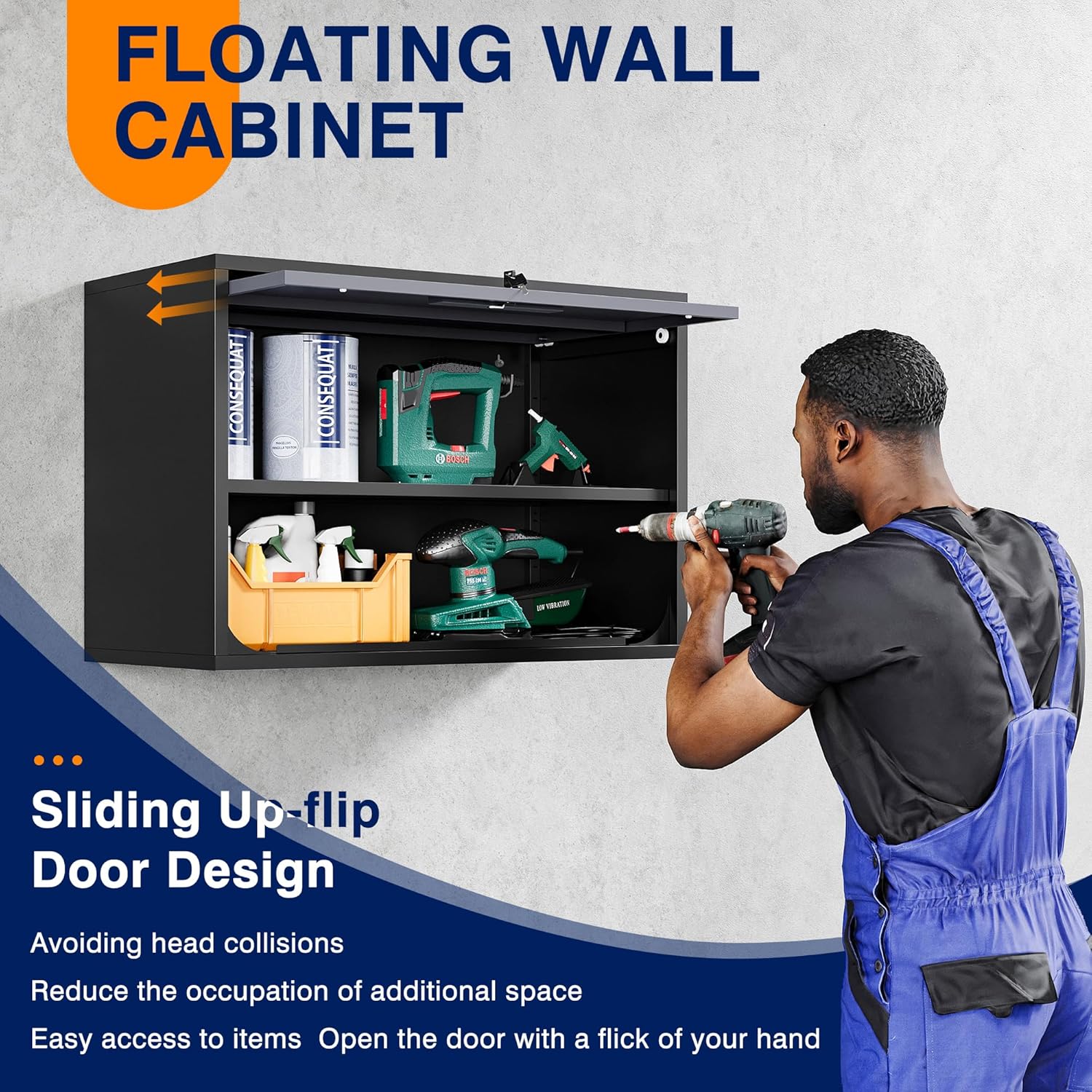 - 『UTILIZE UPPER SPACE RATIONALLY』 31.5"W x 15.7"D x21.6"H-floating cabinet can effectively utilize the upper wall space, providing you with more storage space. Safety locked cupboards allow you to store hazardous paints to keep children and pets from touching them