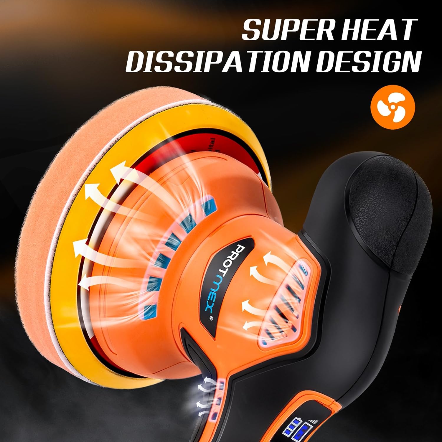 - 【2025 NEWLY UPGRADED ECCENTRIC POLISHER】The Protmex car polisher is equipped with a pure copper motor, and safe temperature control protection, stable and durable operation. The eccentric polisher can help wax spread evenly to prevent over-polishing and paint wear.