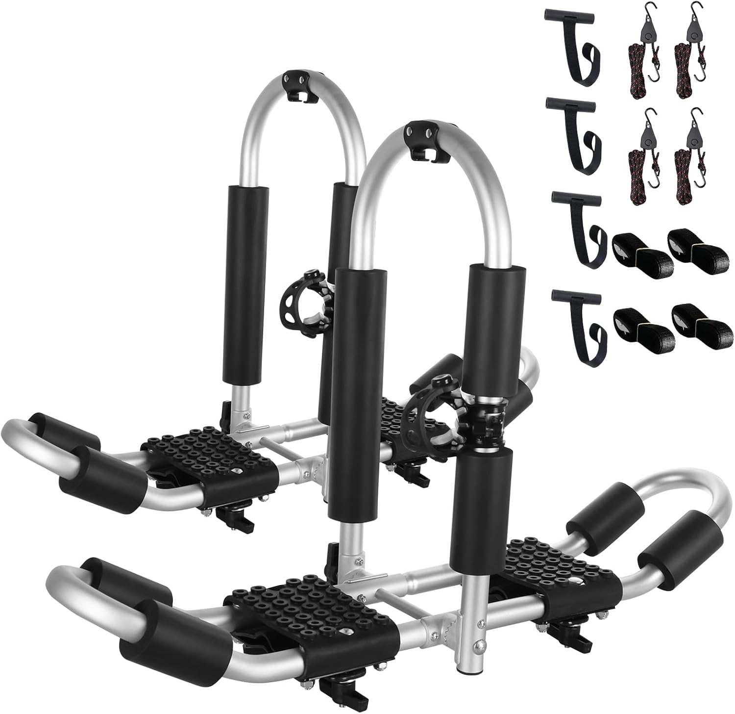 - 【2 In 1 Design】 The rack features a 2-in-1 design for easy installation and robustness.Two kayaks/canoes/boats are carried at the same time, which requires 4 traditional style racks, We only need 2, which is more convenient and easy to enjoy your holiday.