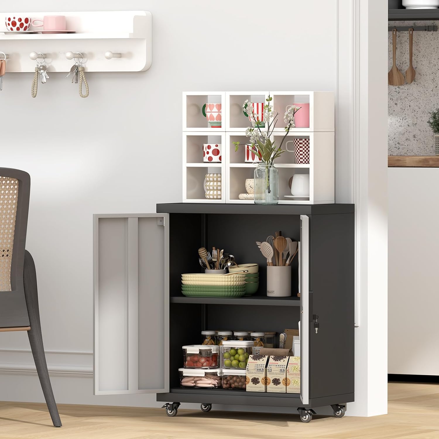 - 🛞【Mobile & Lockable Wheels】This rolling metal storage cabinet with wheels comes with four swivel wheels, allowing you to easily move it to your desired location. Additionally, the wheels can be locked to keep the cabinet fixed in place.