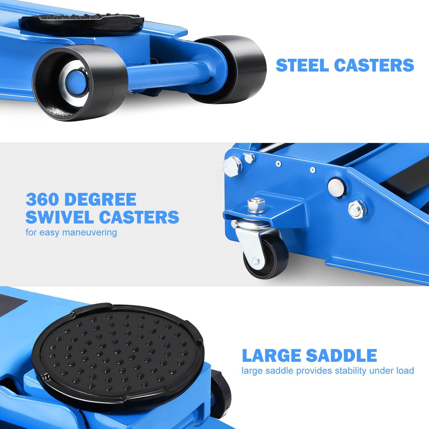 - OVERLOAD PROTECTION & EASY JACK POSITIONING - Built-in dependable safety release valve triggers in the event of an overload to prevent damage or injury. The large saddle equipped with rubber pad provides extra stability and helps protect your vehicle.