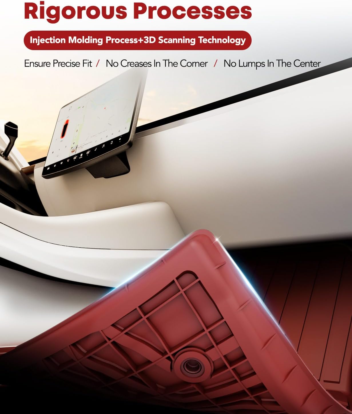 YHTAUTO Custom Fit Red Car Floor Mats for Tesla Model Y 2025-2020 5 Seater, All Weather TPE Car Mats Carpet, Front Rear Trunk Cargo Storage Liner Mats, Anti-Slip Waterproof, Set of 6