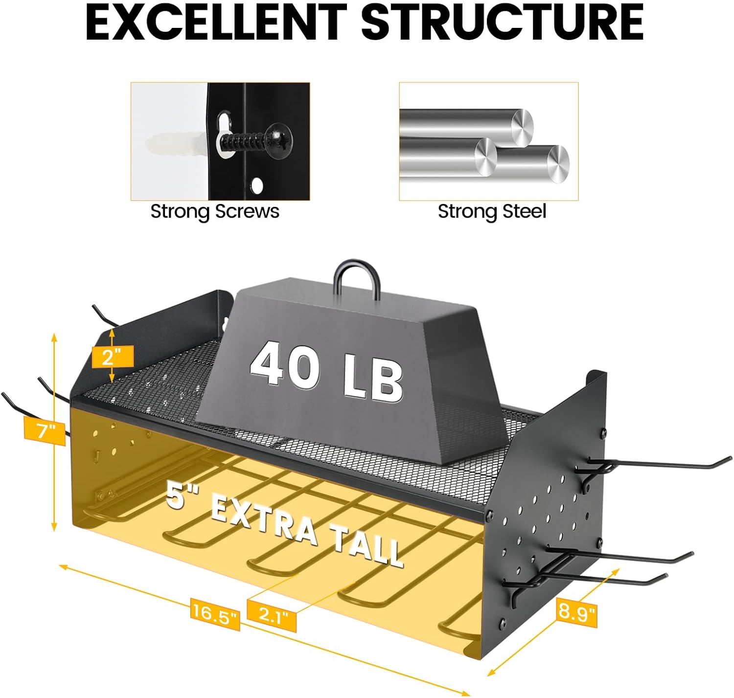 - 40 LB Load-Bearing: Made of robust iron with precision cutting and reinforced structure, ensures durability and strong load capacity, no concerns about breaking or falling off the wall