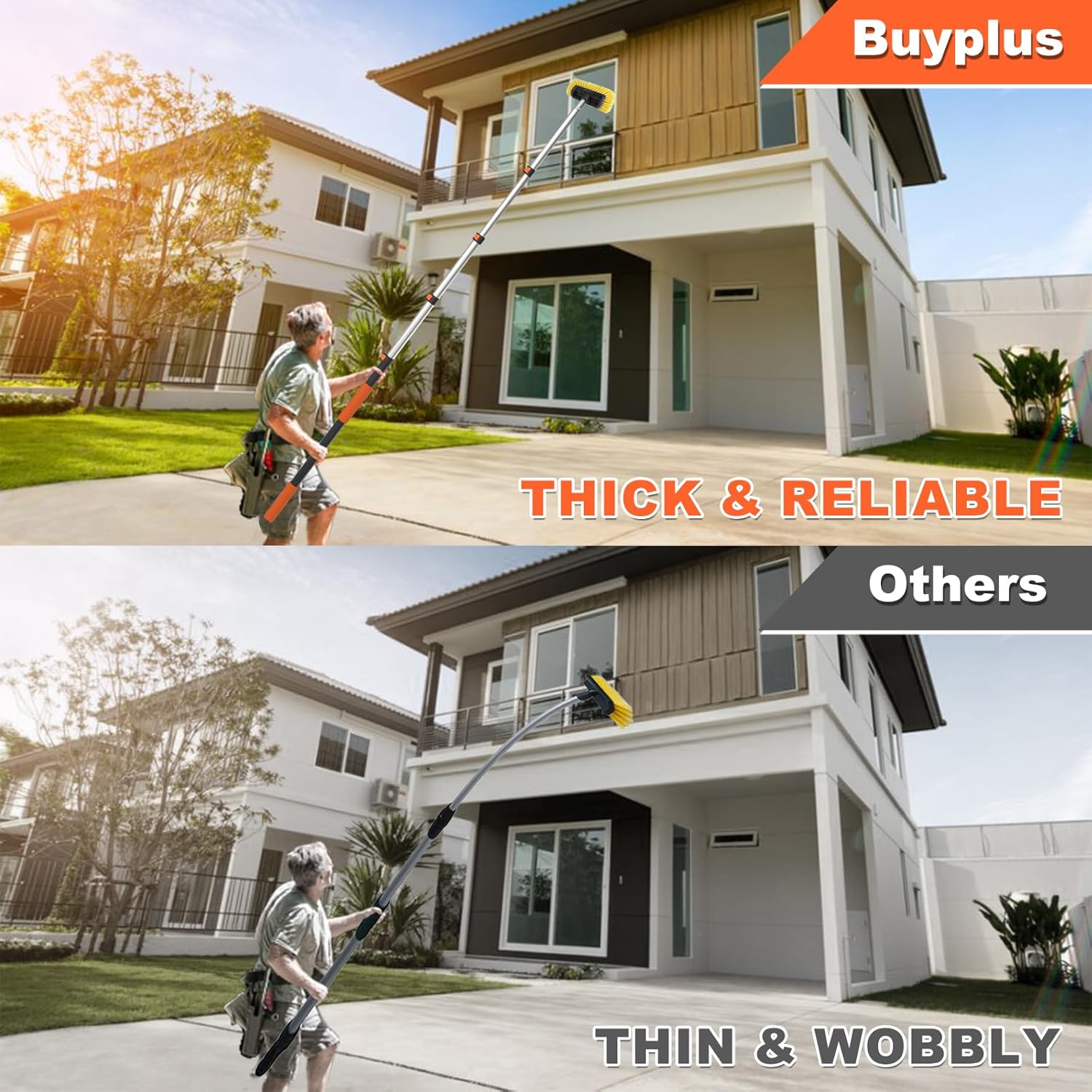 Buyplus 12FT Car Wash Brush with Long Handle, 12-Inch Soft Bristle, with Aluminium Telescoping Pole, for Cleaning Car, SUV, RV, Boats, House Siding, Floors, Solar Panels, and More