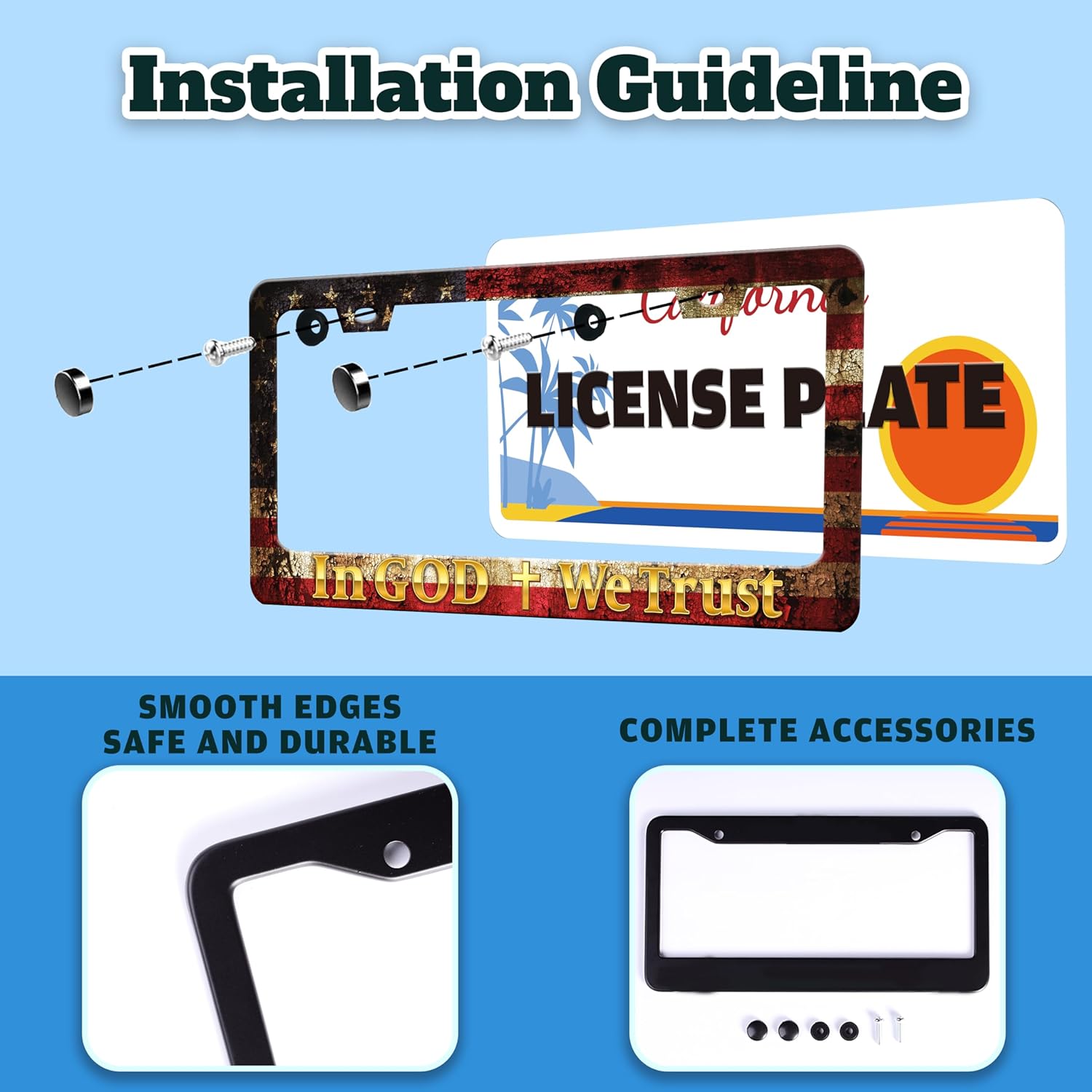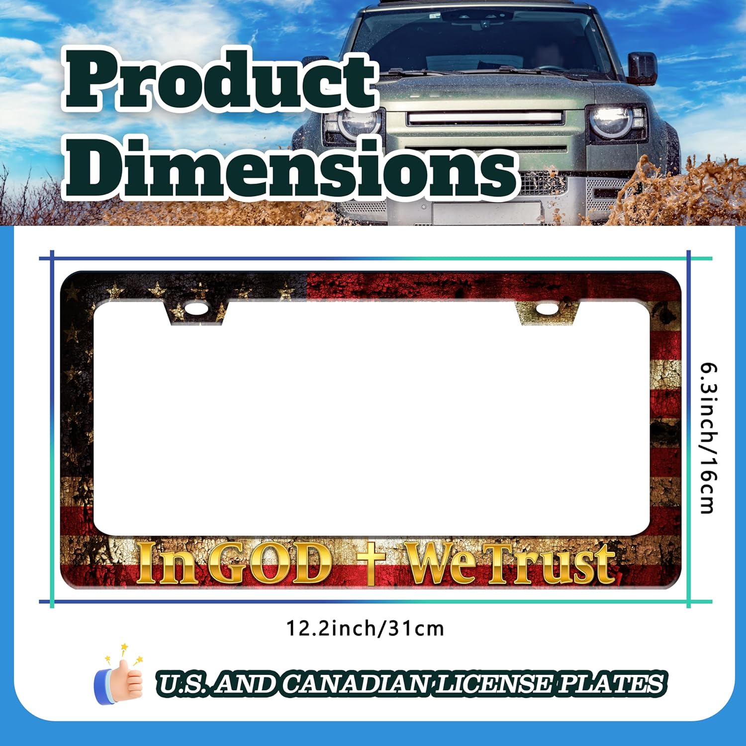 in God We Trust License Plate Frame Cross American Flag for Front or Rear Car Tags Stainless Steel License Plate Holder Funny Car Decoration with Screws 6.3 X 12.2 in