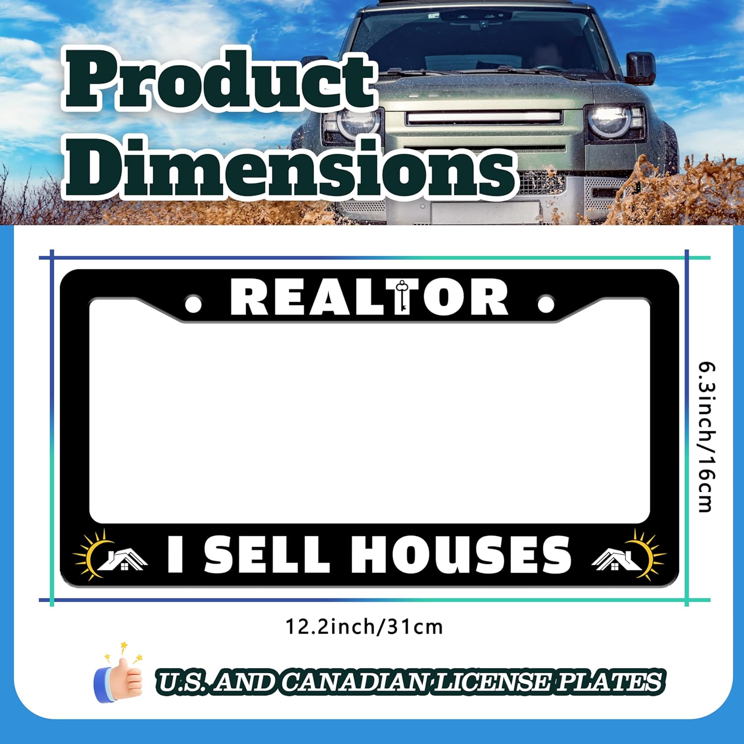 Realtor I Sell Houses License Plate Frame Funny House License Plate Holder for Front or Rear Car Tags Stainless Steel Car Decoration with Screws 6.3 X 12.2 in