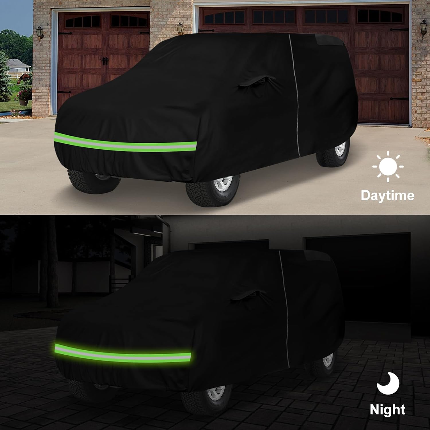 - Premium Material: Made of 300D Oxford clothes high-density material, plus waterproof coating,which is thicker, more durable and more waterproof. The water pressure is 1500, which is enough to deal with most rain and snow weather, and can be placed outdoors for a long time. Inner with cotton liner Protect your car paint
