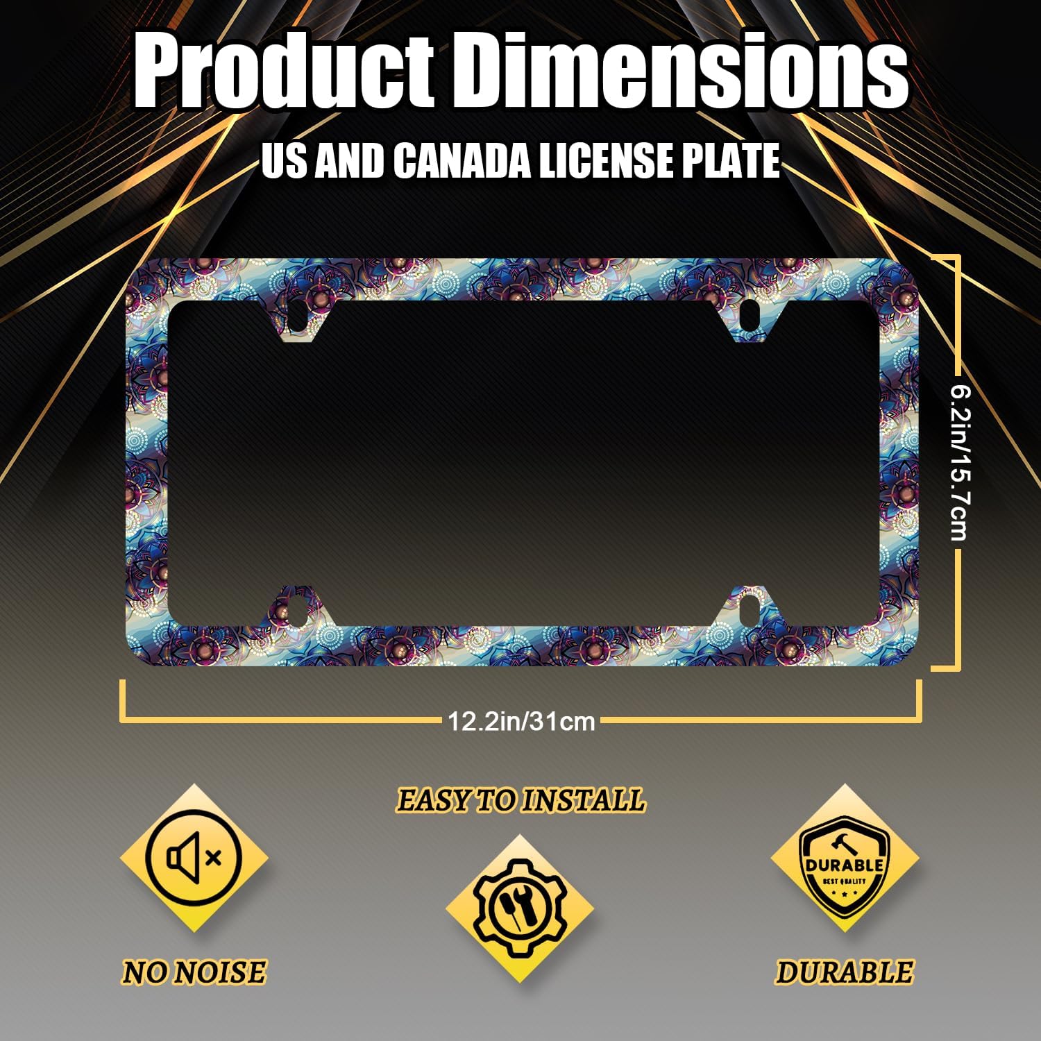 Blue Purple Mandala Flowers License Plate Frame Boho Floral License Plate Holder Colorful License Plate for Car Decoration Stainless Steel Car Accessory with Screws Men Women 12.3" x 6.3"