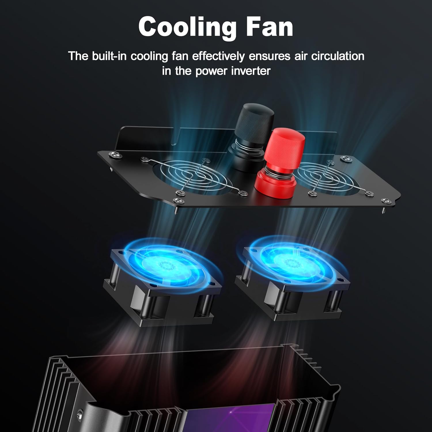 - 【5 Fold Comprehensive Safety Protection】Over Voltage / Low Voltage / Overload / Short Circuit / Over Heat.With advanced isolation drive technology.Durable Aluminum Housing can protect inverter from drops and bumps.The built-in cooling fan ensures you a ultra silent using experience,also keeps the inverter running safely and effectively at a low temperature to avoid overheat.