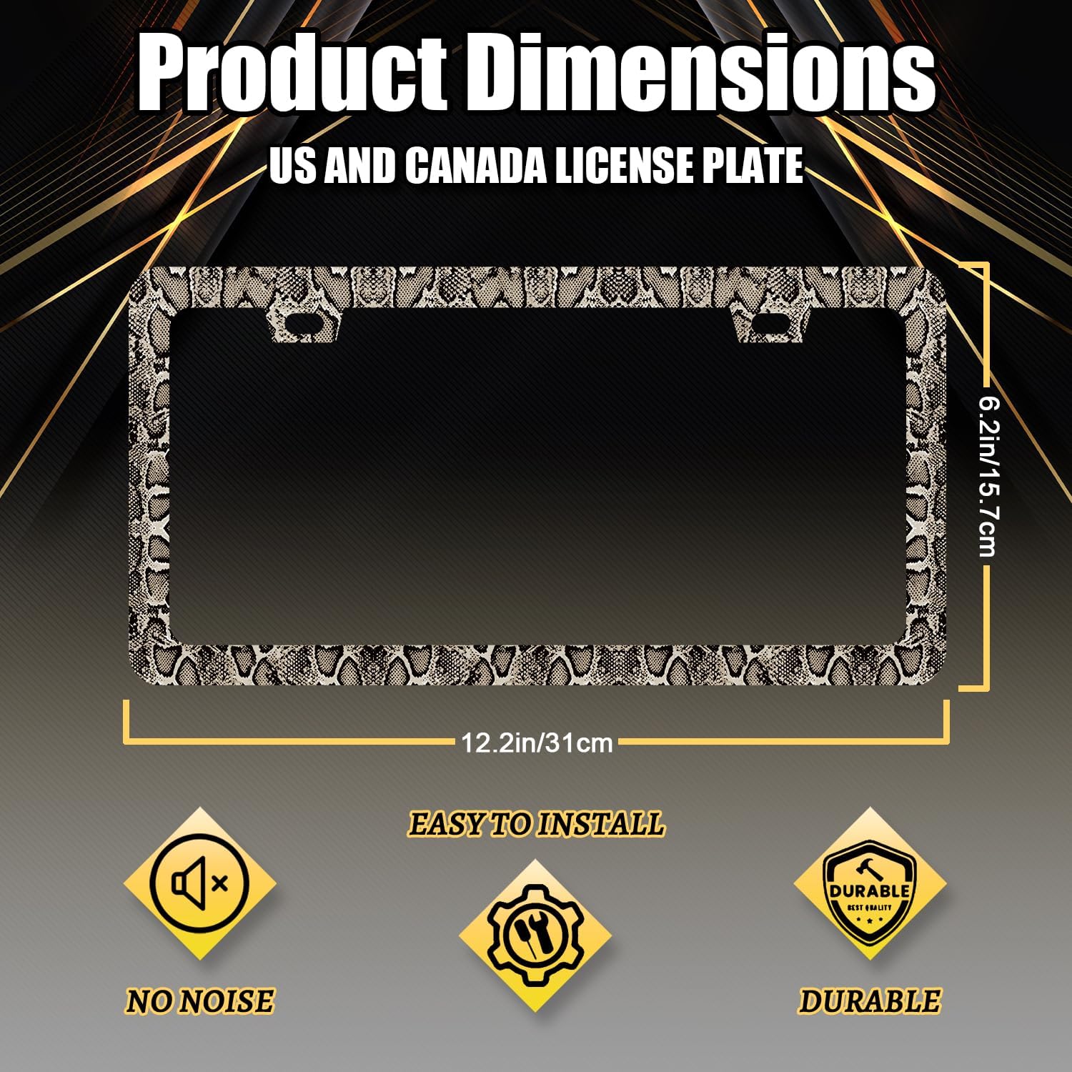 Snake Skin Print License Plate Frame Brown Animal Texture License Plate Holder Funny License Plate for Car Decoration Stainless Steel Snakes Car Accessory with Screws Men Women 12.3" x 6.3"