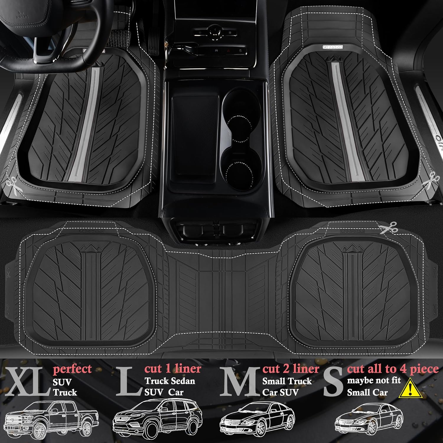 - 【Custom Fit Design】: Created for fast and easy installation in most cars, trucks and SUVs, these universal Flexible Liners floor mats can be trimmed with a pair of scissors to provide the perfect custom fit for your vehicle