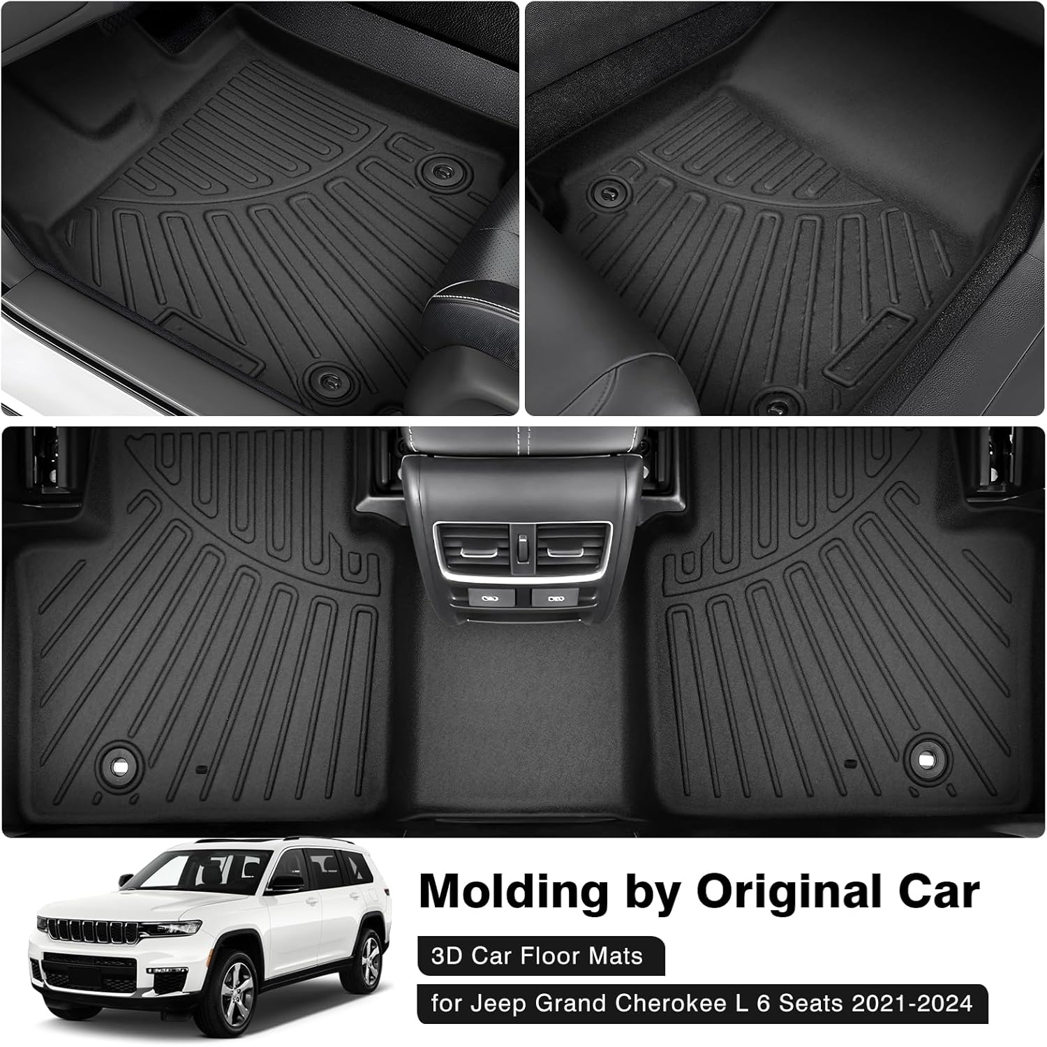 - 【Crafted for Grand Cherokee L Exclusivity】 Introducing premium floor mats, that seamlessly integrate with your Jeep Grand Cherokee L 6 Seats 2021 2022 2023 2024 2025(Included Laredo/ Altitude/ Limited/ Overland Summit/ Summit Reserve submodels)through precise 3D-scanned design, eliminating the need for trimming. ATTENTION: JUST FOR 6 Passengers Models.