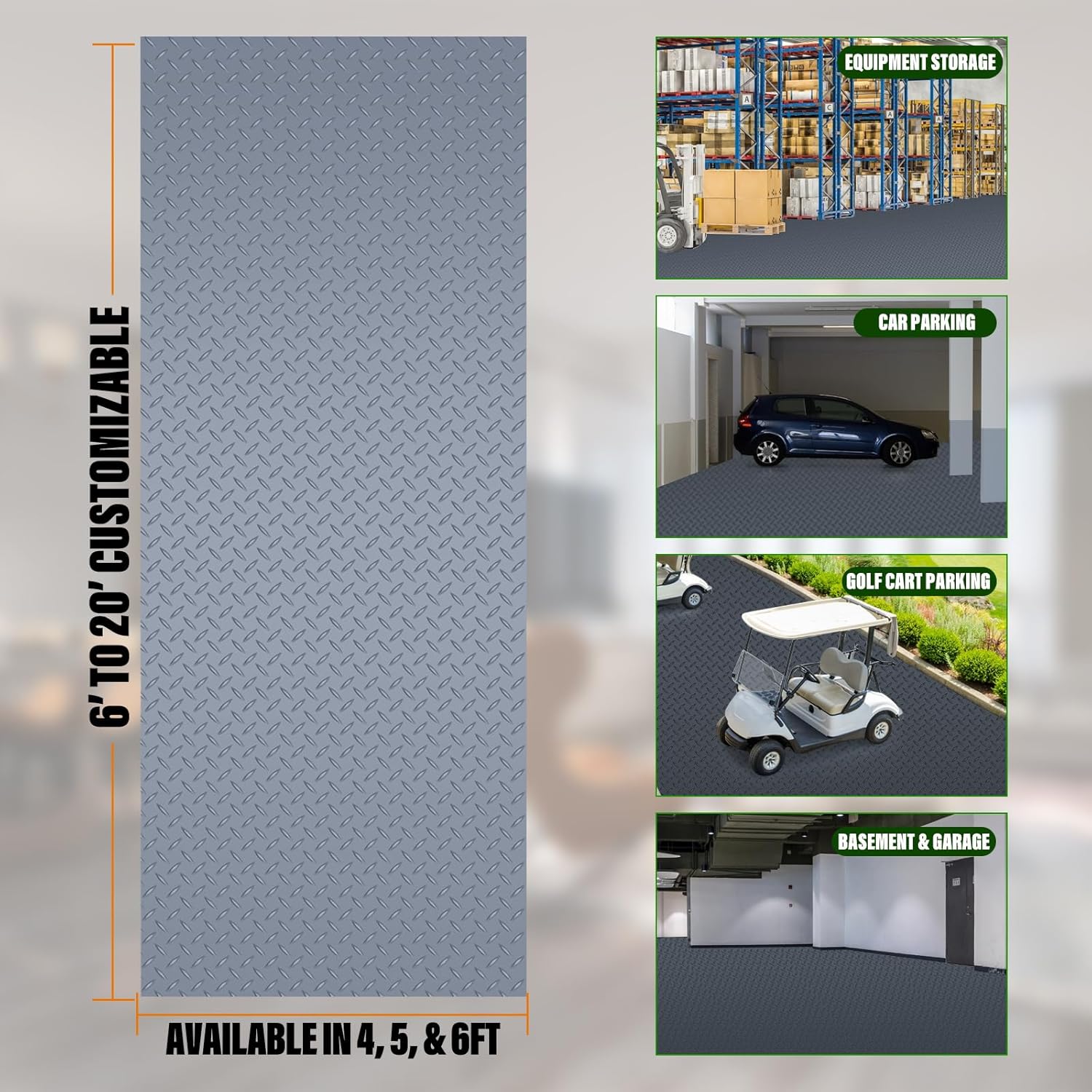 SEAL 6 x 15 Ft Premium Garage Floor Mat, Solid 2.8mm Thick Gray Commercial Grade Heavy Duty Parking Mat for Garage Floor, Golf Cart Parking, Water/Stain Resistant Floor Runner (Embossed Diamond Plate)