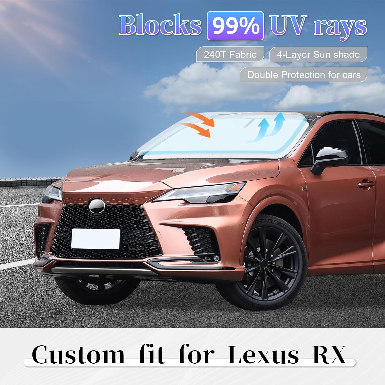 Sun Shade Sunshade for Lexus RX 2023-2025 2026 Windshield Cover, 4-Layer Front Window Shade Custom Fit RX 350, RX 350 F Sport, RX 350L Sun Visor 240T Foldable Shade Blocks UV Rays Car Accessories