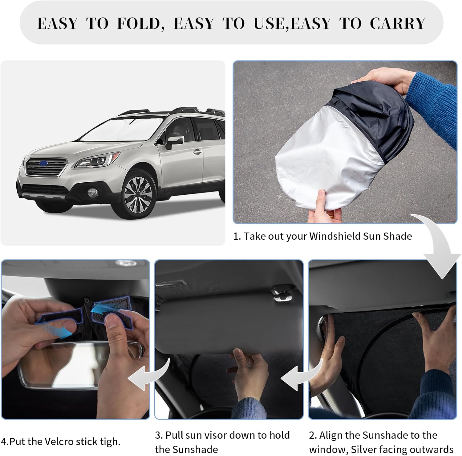 - 【Vehicle Specific 】Sunshade windshield Custom for 2019 2018 2017 2016 2015 2014 Subaru Outback SUV, Base, Premium, Limited, Touring Accessories. --You've spent too much time in the California and Texas sun, buy it now, Please don’t waste time,reject the heat, quality products - Collapsible sun shade can be full covered on windshield and No gap. Fits like a charm!