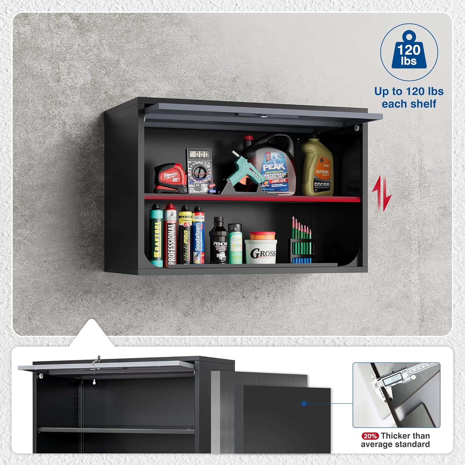 Metal Storage Cabinet Black&Gray Wall Cabinets with Shelf and Locking Door - Wall Mounted Storage Cabinet for Garage Warehouse Home Office - Assembly Required