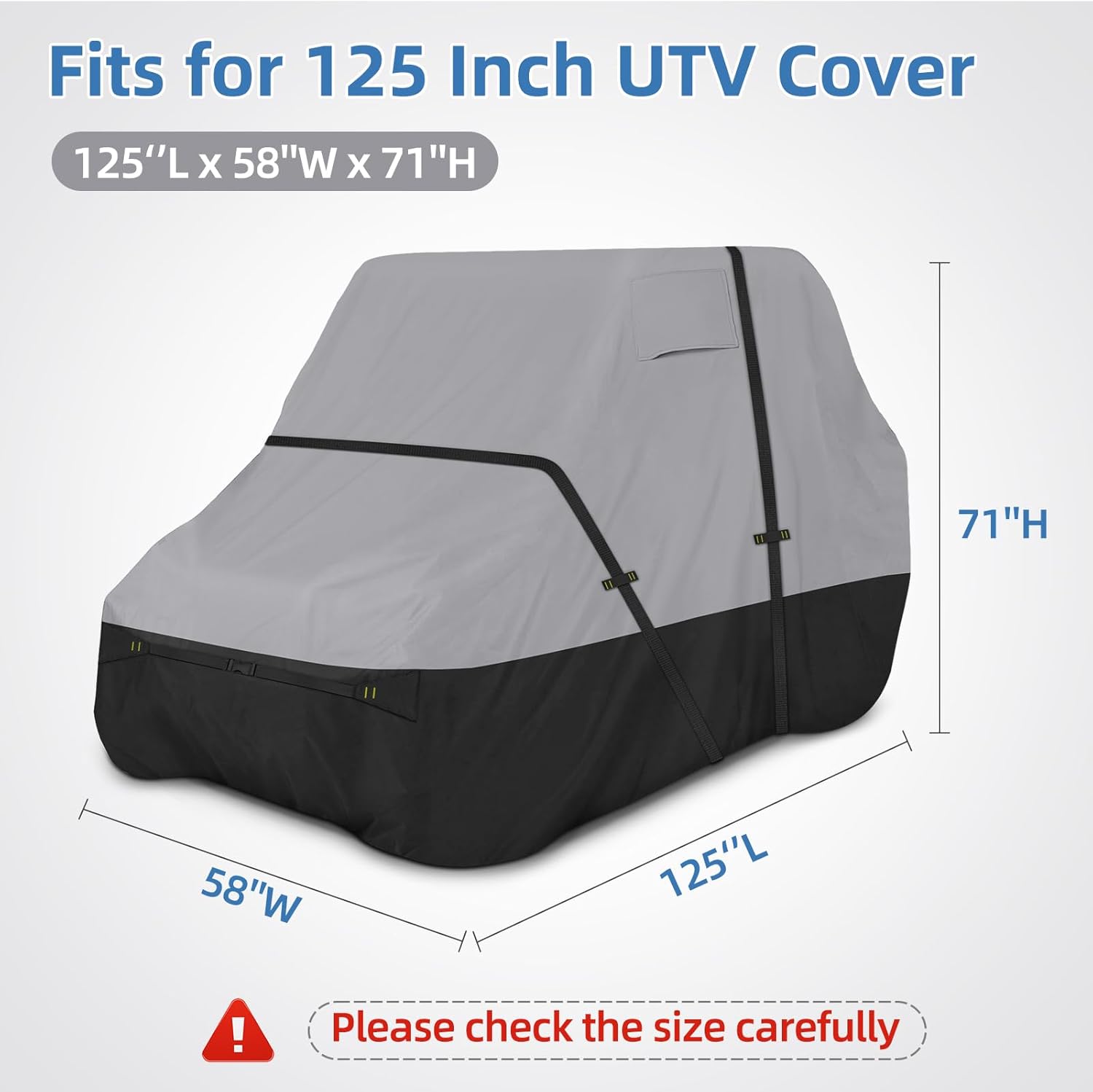 - UNIVERSAL SIZE: The 125 inches 2-3 passengers UTV cover (L x W x H: 125" x58" x 71"),Suit for Polaris, rzr, Kawasaki, Honda, Can-Am, Arctic Cat, Yamaha utv etc
