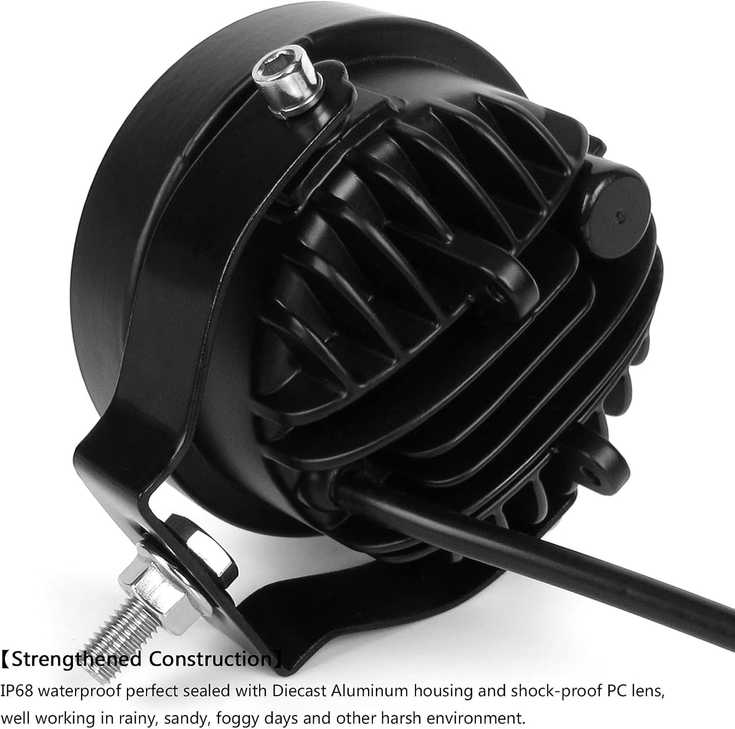 - 【STRONG CONSTRUCTION】 IP68 Waterproof Rate, waterproof up to 1 meter of water for 30 minutes and effectively dustproof. The stainless mounting brackets are rustproof and anticorrosive. perfect sealed with Diecast Aluminum housing and shock-proof PC lens, well working in rainy, sandy, foggy days and other harsh environment.
