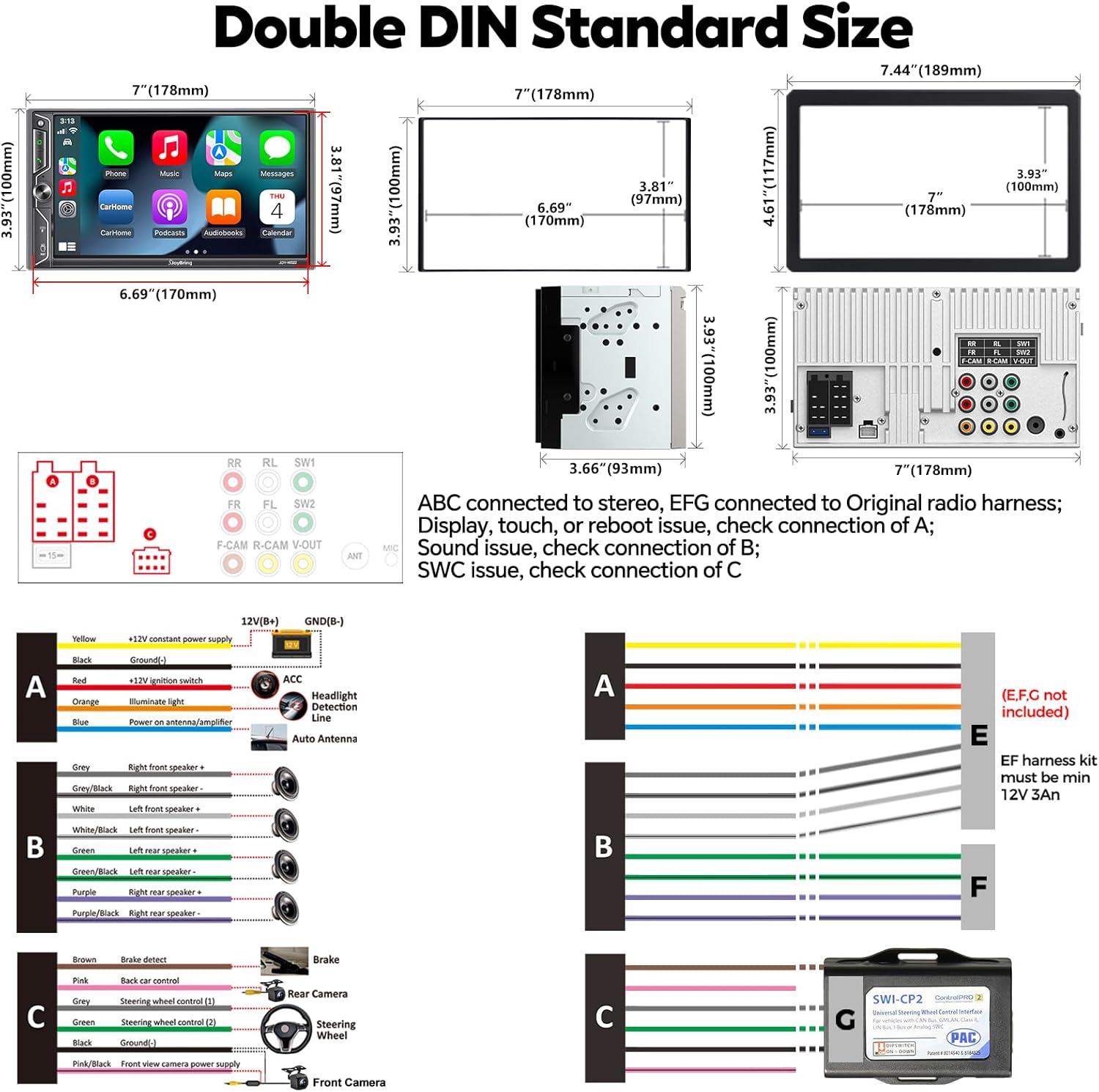 [QLED Screen Upgrade] 7" Double Din Car Stereo with Wireless Apple CarPlay and Android Auto, 240W Powerful Sound, 4.2-Channel Audio Output, Bluetooth, MirrorLink, Backup Camera, AM/FM Car Radio