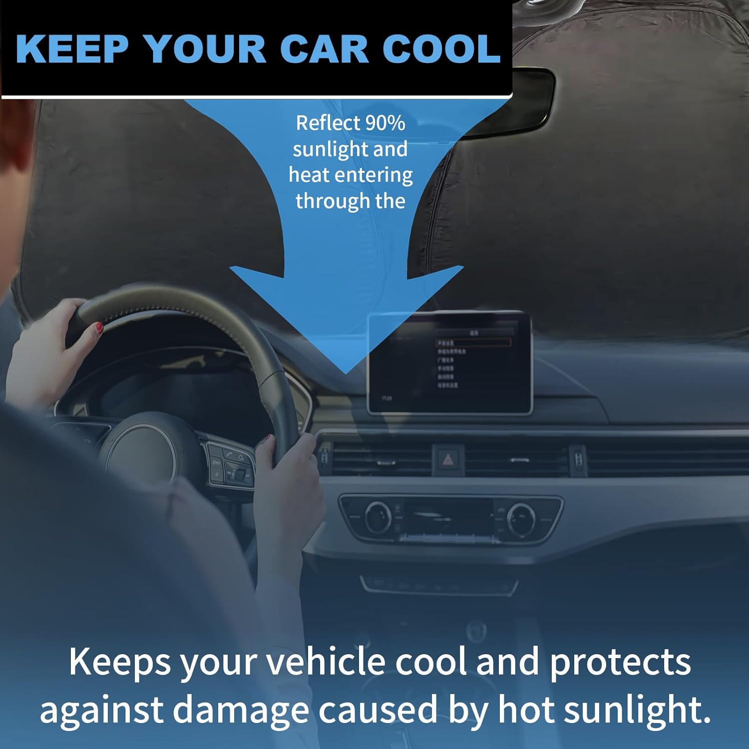 - 【Double Layer Design 】: With its dual-layer construction, this sunshade provides superior heat dissipation, effectively reducing the temperature inside your car and keeping it cool even on the hottest days, ensuring a comfortable driving experience. Helping to reduce the temperature inside the car, keep your car cool and protect the sun from irradiating.