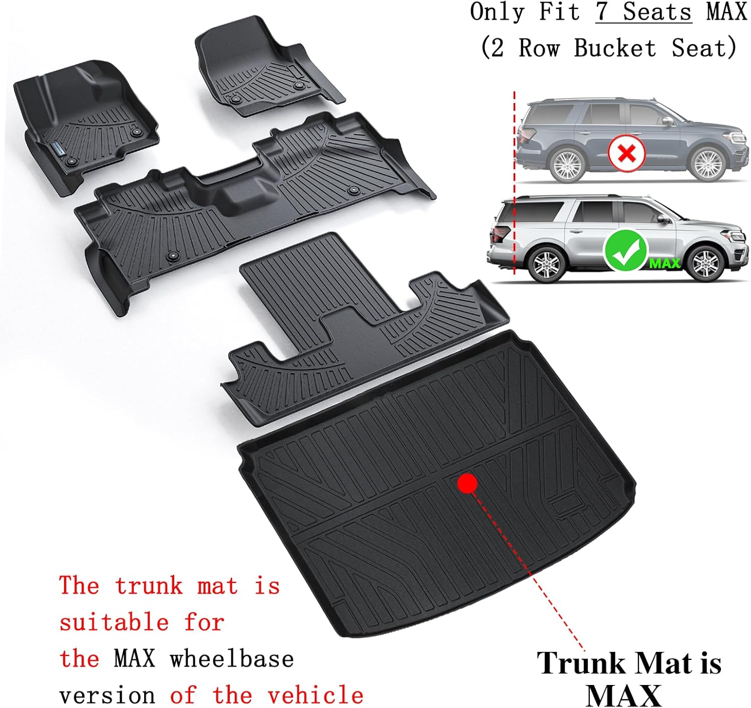 Floor Mats for Ford Expedition MAX 2018-2024 (Only Fit 7 Seats) (2 Row Bucket Seat) with Trunk mat,TPE All Weather Protection 3 Rows Car Floor Liners with Cargo Liners Accessories