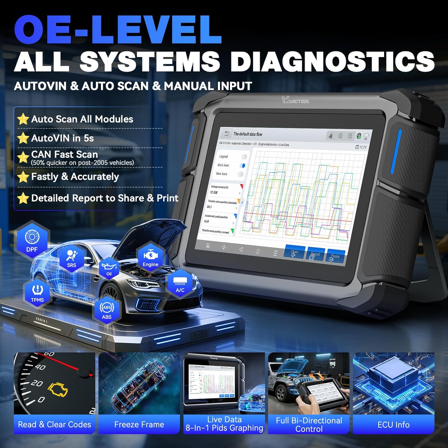 VDIAGTOOL Bidirectional Scan Tool VD70, OBD2 Scanner Diagnostic Tool with ECU Coding, 36+ Resets, PMI, FCA AutoAuth, All System, CAN FD & DoIP, V.A.G. Guide, 3-Year Update