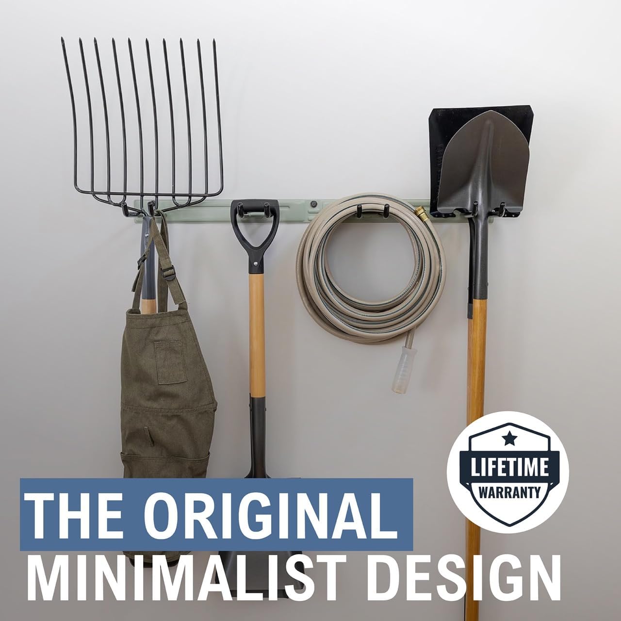 StoreYourBoard Wall-Mounted Rack With 4 Garage Hooks – Heavy-Duty Steel Holder Garage & Garden Storage for Shed, Workshop, or Home Organization – For Rakes, Shovels, Tools & More – 1 Pack, Cactus