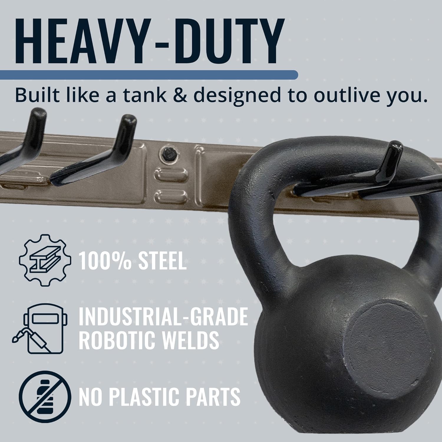 - ULTRA-STRONG & BUILT TO LAST – Made from 100% solid steel with no plastic parts or assembly required, this tool rack is crafted to withstand heavy-duty use. Each wall-mounted storage rack arrives fully welded and powder-coated to resist rust and corrosion. Perfect for organizing tools, outdoor storage gear, or even a fishing pole rack for the garage.