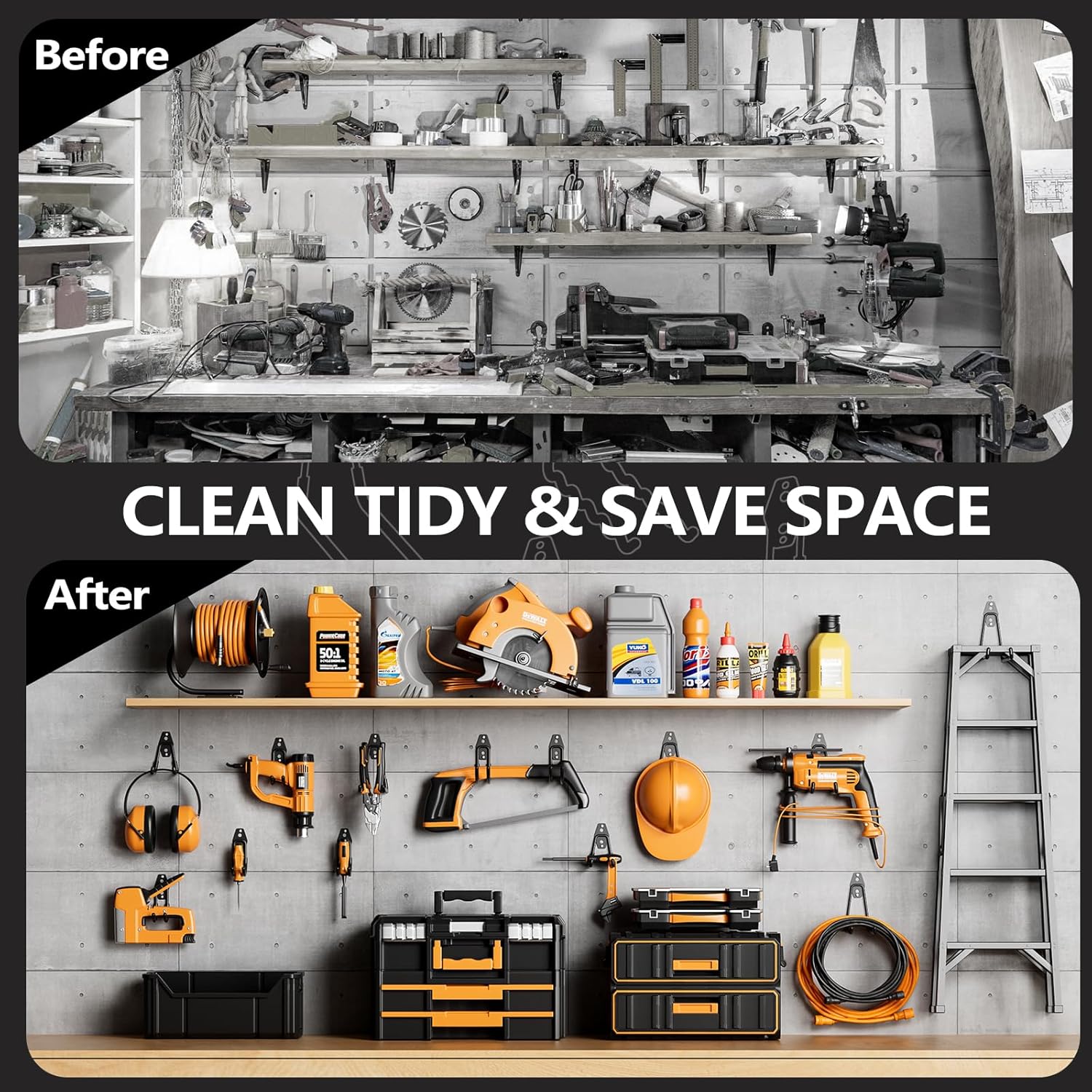 - Multi-Purpose Organization: Perfect for organizing your garage, garden, shop, shed, or basement. These hooks are ideal for hanging ladders, cleaning tools, gardening equipment, power tools, bicycles, and more, helping you maximize space and keep everything in order