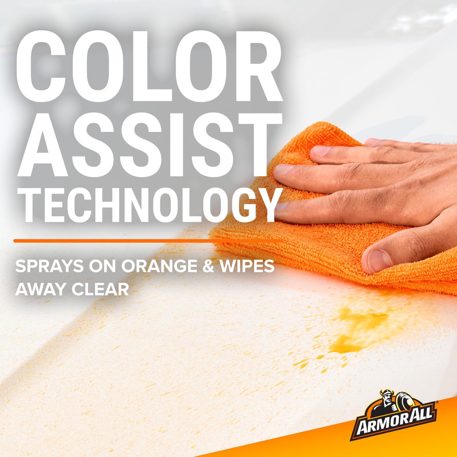 - SPRAYS ON ORANGE AND WIPES AWAY CLEAR: Easy-to-use liquid wax with Color Assist Technology sprays on orange and wipes away crystal clear to help ensure you never miss a spot